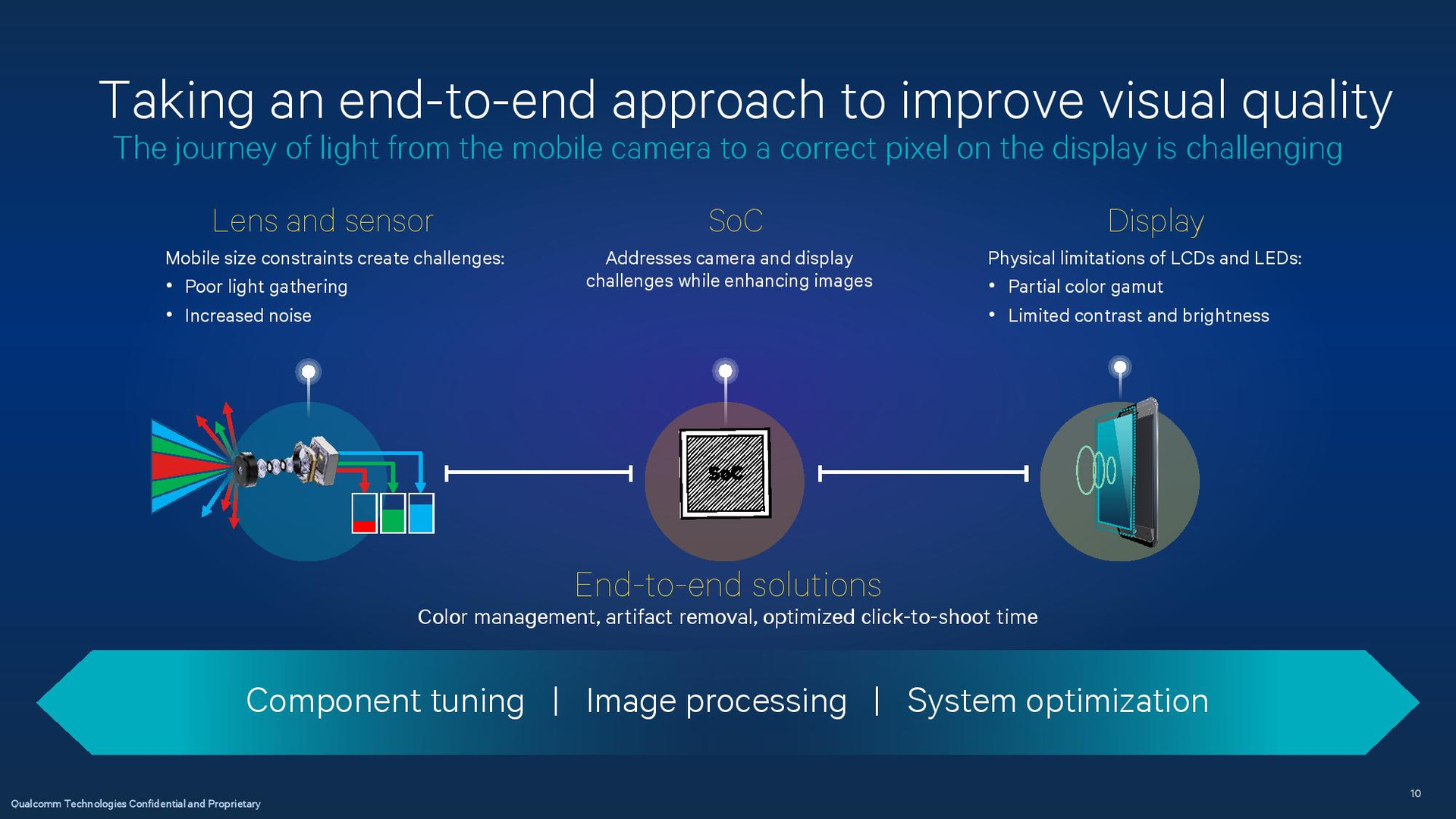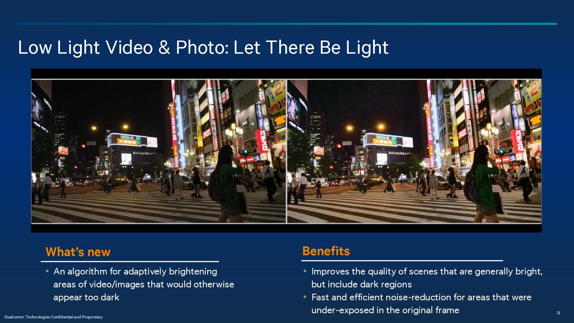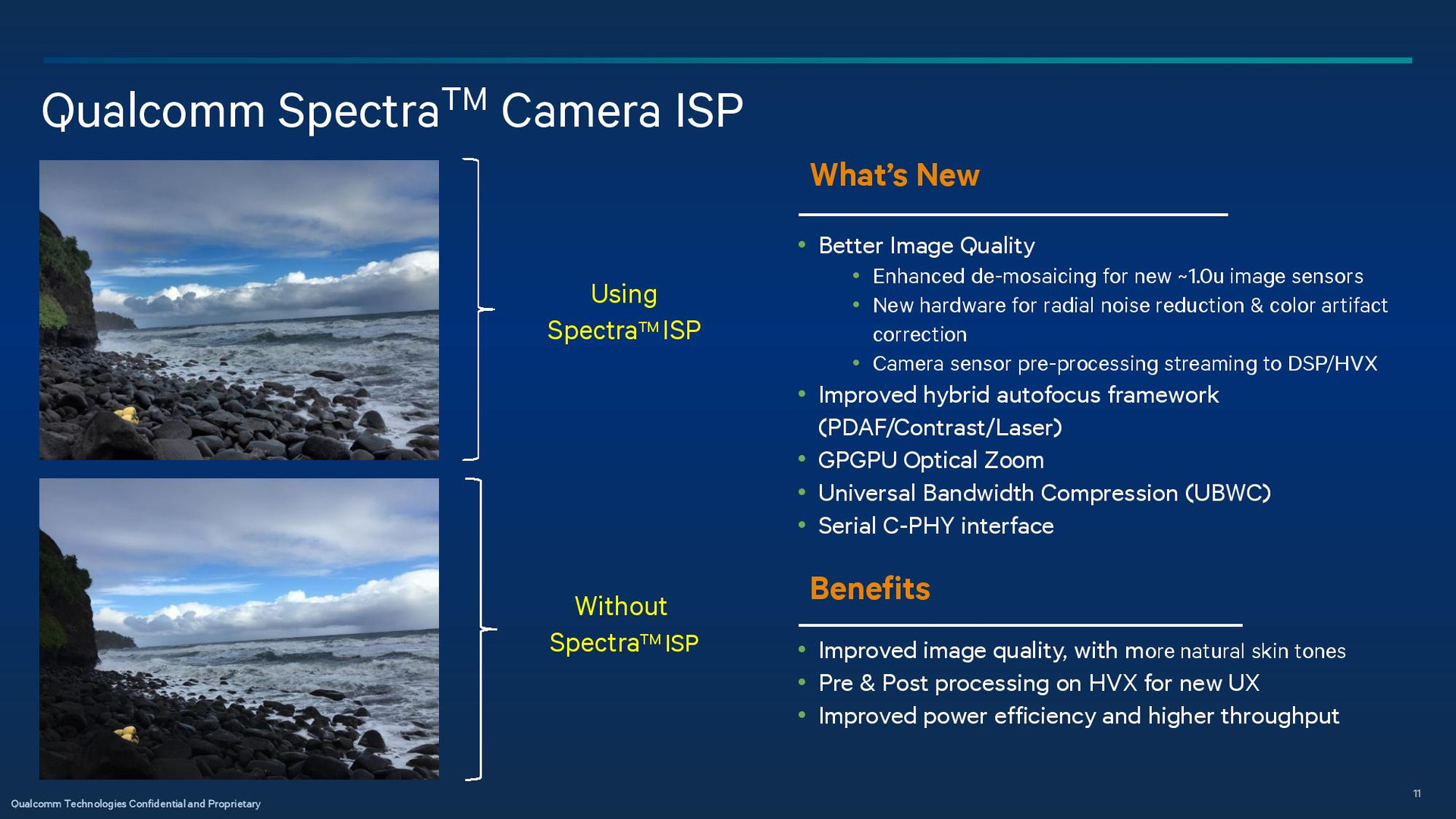 Dank OpenCL-2.0-Support ist der Chip auch für GPGPU-Aufgaben gerüstet und soll insbesondere Videos sehr viel schneller – eine Folie zeigt hier Zuwächse von mehr als 150 Prozent – als bisher verarbeiten (vermutlich H.265-Material unter Zuhilfenahme spezialisierter De- und Encoder). Fotoaufnahmen profitieren wiederum von neuen Features zur Rauschunterdrückung, einer verbesserten Ausleuchtung von Nachtaufnahmen sowie der Unterstützung von Depth Maps zur nachträglichen Fokusverschiebung.
