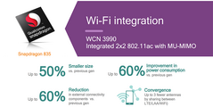 - WLAN-Modul mit Dual-Band 2x2 802.11ac WLAN, MU-MIMO-Support. 50 Prozent kleiner und bis zu 60 Prozent weniger Energieverbrauch verglichen mit Snapdragon 820.