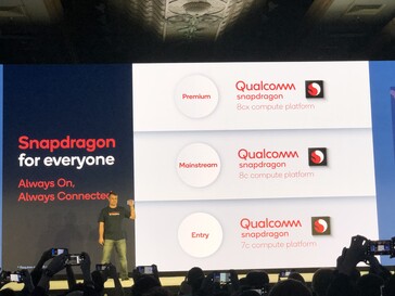 Qualcomm stellte heute eine Reihe neuer SoCs seiner "Snapdragon Compute Platform"-Produktlinie vor, mit denen man seine "Always On", "Always Connected"-PCs aka. Windows-on-ARM weiter vorantreiben möchte. Während der Snapdragon 8cx bereits letztes Jahr angekündigt wurde, sehen wir heute den Snapdragon 7c und den Snapdragon 8c, die das Portfolio zukünftig nach unten hin ergänzen werden. Snapdragon-Notebooks sollen damit niedrige Preisregionen von rund 500 USD vorstoßen.