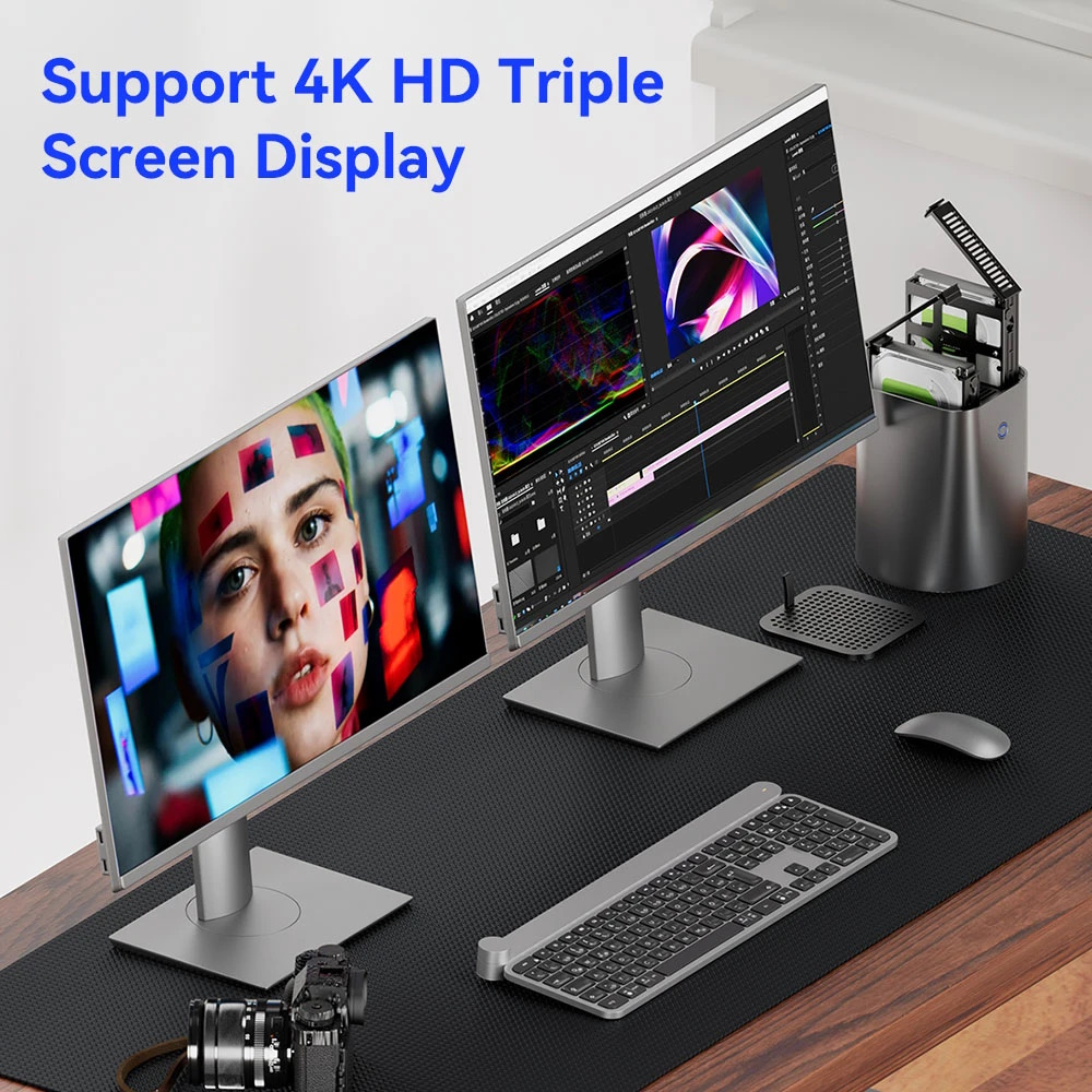 Das Modell kann problemlos als ganz typischer Mini-PC eingesetzt werden, allerdings auch als Netzwerkspeicher. Besonders profitieren können Kunden dann von der Möglichkeit, auch klassische Magnetfestplatten im 3,5-Zoll-Format zu installieren - diese Massenspeicher bieten je Euro sozusagen besonders viel Speicher. 2,5-Zoll-Laufwerke werden ebenfalls unterstützt, als primärer Systemspeicher wird eine M.2-SSD eingesetzt. Verbaut ist auch ein Speicherkartenslot.