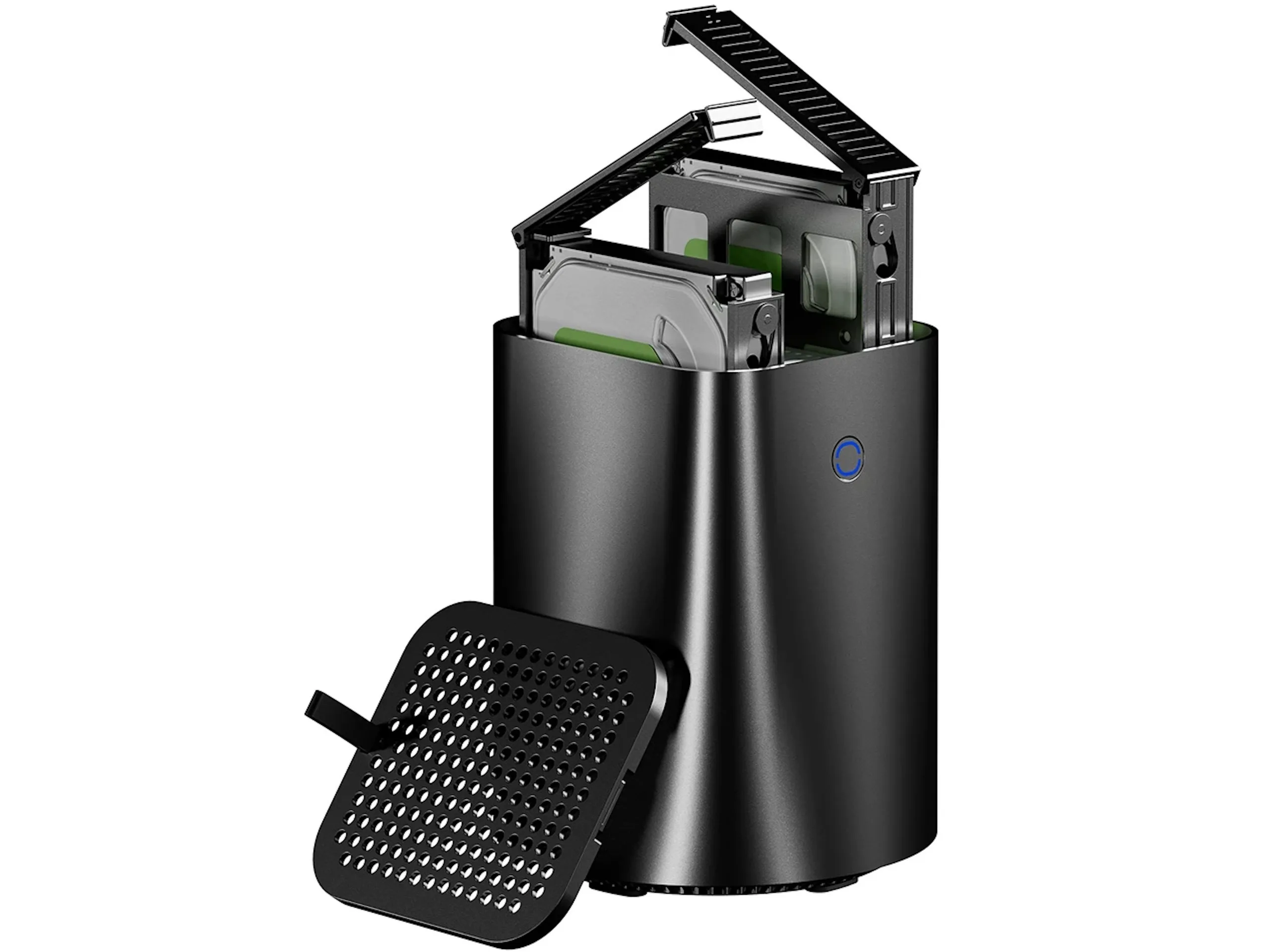 Angebunden an ein Netzwerk kann das Modell über Ethernet werden - dafür stehen gleich zweimal Ethernet-Ports mit einer maximalen Datenübertragungsrate von jeweils 2,5 GBit/s bereit. Das ist auch für die Nutzung als Netzwerkspeicher sinnvoll, da auch klassische Magnetfestplatten zumindest bei sequenziellen Datenübertragungen den Gigabit-Standard schon vollständig auslasten können. Für die Bildausgabe stehen HDMI, DisplayPort und USB Typ C bereit, wobei der Aoostar R1 über USB Typ C gleich bis zu 100 Watt entgegennehmen kann. Verbaut sind dann jeweils zweimal USB 2.0 und USB 3.0 und auch eine Klinkenbuchse fehlt nicht.