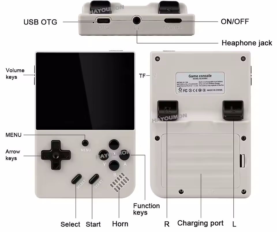 Genutzt wird wie üblich eine angepasste Linux-Distribution, welche dann die entsprechenden Emulatoren gleich mitbringt und auf die Bedienung ohne einen Touchscreen und mit Tasten mehr oder weniger gut optimiert ist. Es steht ein einzelner Speicherkartenslot bereit, an der Oberseite befinden sich neben einem zweiten USB-Anschluss auch ein Kopfhöreranschluss.