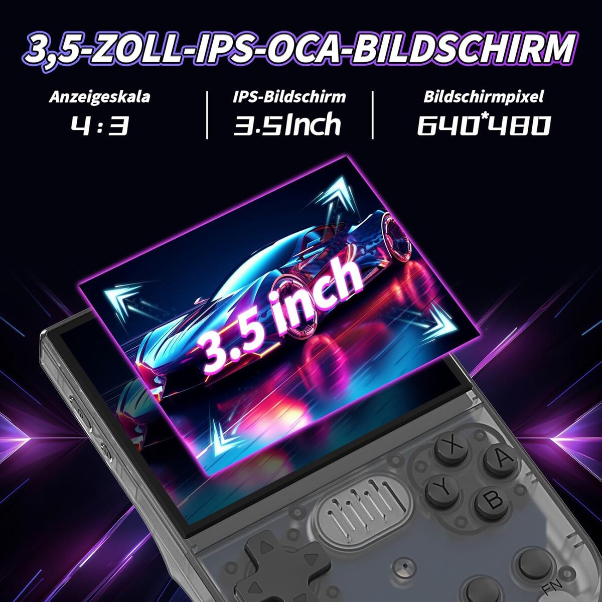 Verbaut ist ein 3,5 Zoll großer IPS-Bildschirm, welcher mit 640 x 480 Pixeln auflöst und damit im 4:3-Format kommt. Mit dem RK3326 kommt ein für Retro-Handhelds durchaus typischer SoC zum Einsatz, welcher vier Cortex-A35-Rechenkerne mitbringt. Emulieren lassen dürften sich damit Videospiele ganz verschiedener Plattformen, so unter anderem auch für verschiedene Game Boy-Generationen. Bei der PlayStation Portable und dem Nintendo 64 gibt es durchaus Einschränkungen. Nintendo DS-Titel lassen sich rein von der Rechenleistung offenbar angemessen emulieren, allerdings bringt der R36VX eben nur einen Bildschirm mit.