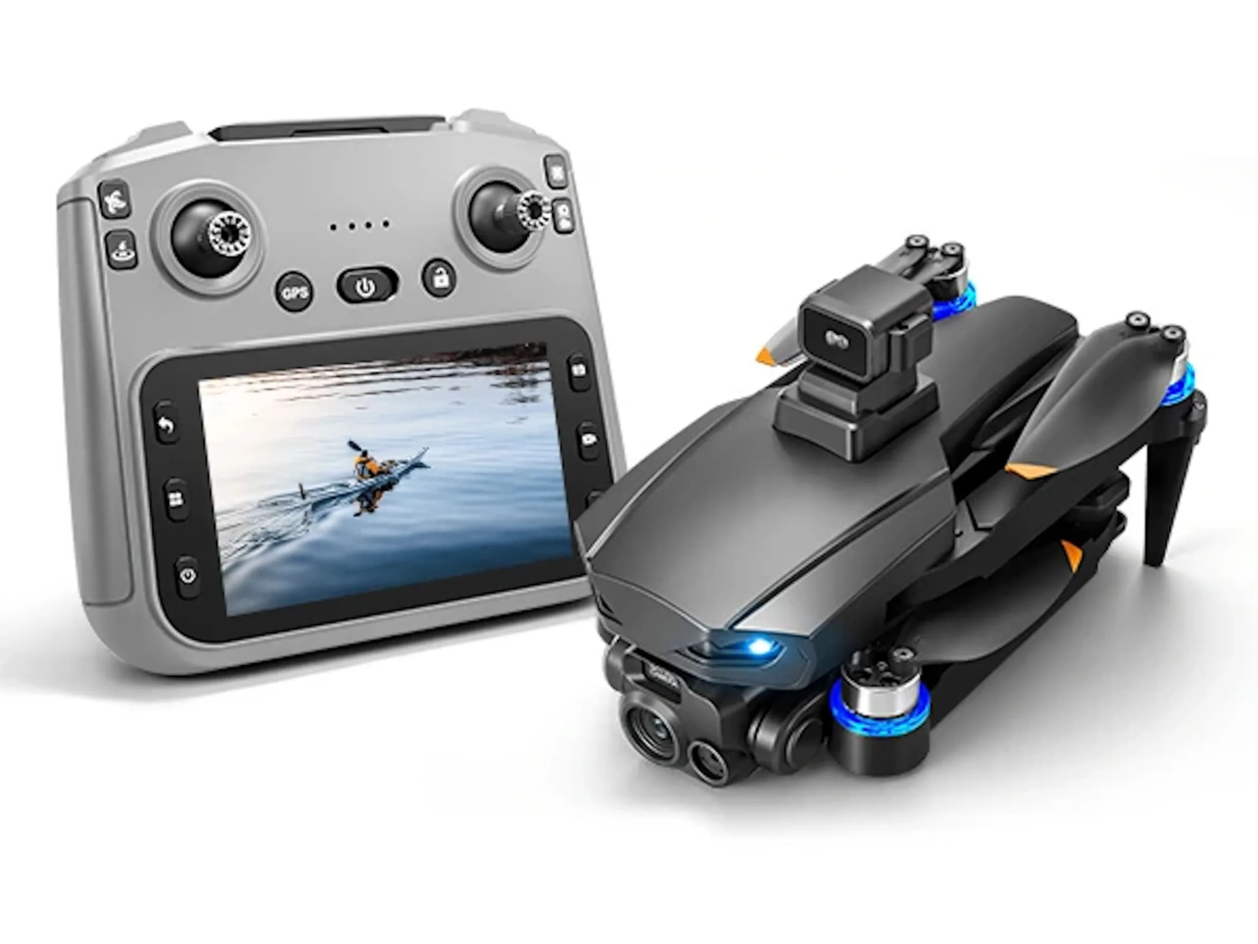 Die Flugdauer wird mit zwischen 15 und 20 Minuten angegeben, die Ladezeit soll bei rund zwei Stunden liegen. Angeboten wird die Drohne auch gleich mit einem zweiten Akku zu einem Preis von rund 136 Euro. Mitgeliefert wird eine Fernbedienung mit einem 5,5 Zoll großem Bildschirm, die FPV-Übertragung von Bildinhalten soll über bis zu 500 Metern möglich sein. Verbaut ist ein GPS-Modul, damit sollen die PJC RG709 Pro Wegpunkte abfliegen können, was im Regelfall eine zumindest weniger aufwendige Art der Navigation darstellen dürfte.