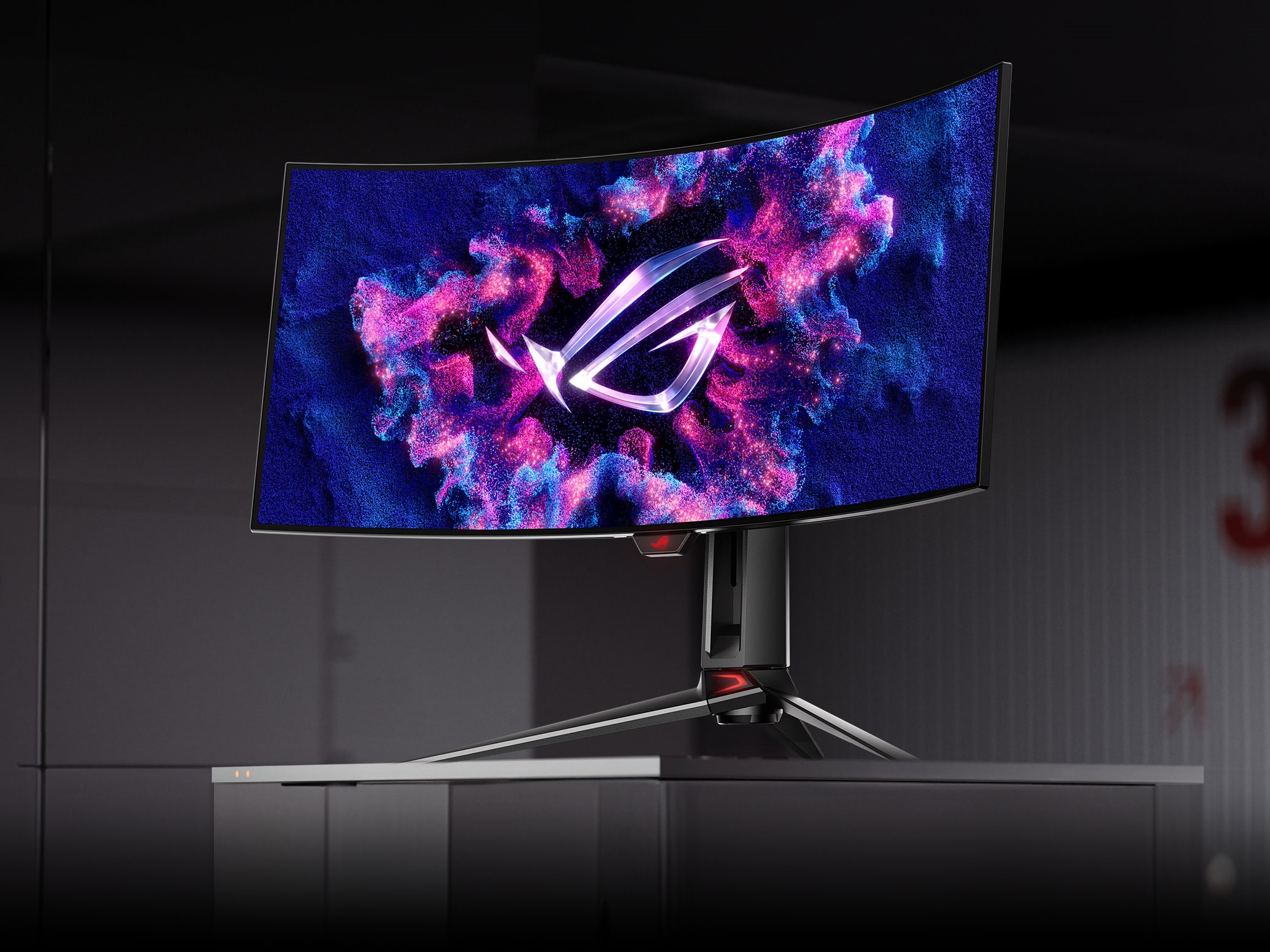 Das mit einem Radius von 800 Millimetern gekrümmte OLED-Panel soll somit eine Bildwiederholfrequenz von 240 Hz unterstützen, die Grau-zu-Grau-Reaktionszeit wird mit 0,03 Millisekunden angegeben. Die maximale Helligkeit bei der Wiedergabe von HDR-Material soll bei 1.300 cd/m² liegen. Der sRGB-Farbraum wird Asus zufolge zu 135 Prozent, der DCI-P3-Farbraum zu 99 Prozent und damit fast vollständig wiedergeben. Die Farbabweichung Delta E liegt bei unter 2, ein Kalibrierreport wird mitgeliefert. Die Auflösung beträgt 3.440 x 1.440 Pixeln, dementsprechend handelt es sich um ein extrabreites 21:9-Panel.