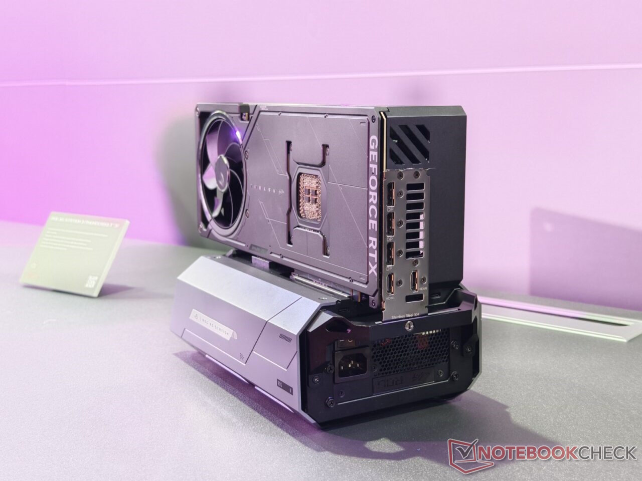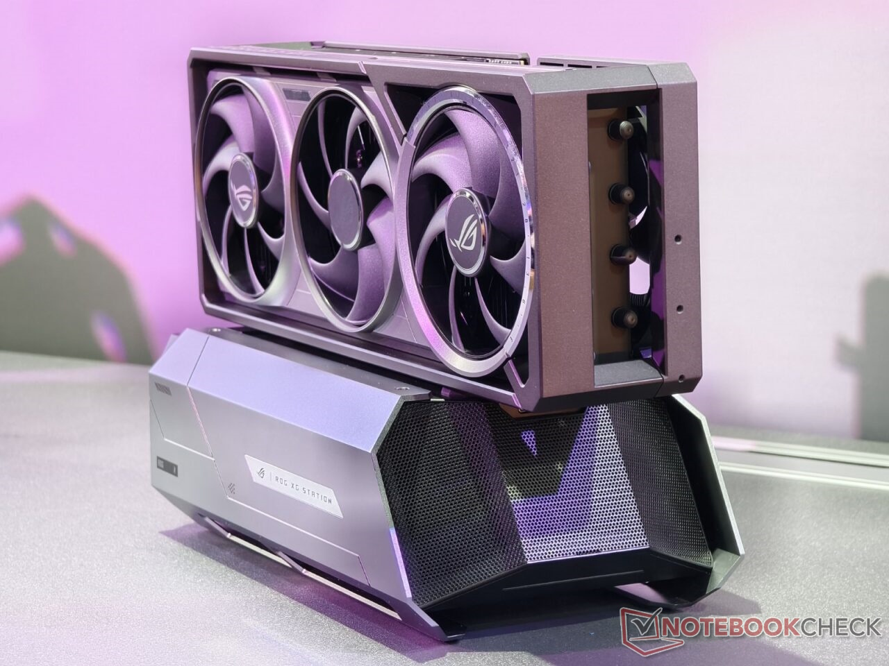 So kann die ROG XG Station 3 über eine Thunderbolt 5-Verbindung und damit USB Typ C an einen Laptop oder letztlich auch an einen Desktop-PC oder Gaming-Handheld angeschlossen werden. Dabei muss das entsprechende Gerät natürlich auch Thunderbolt 5 unterstützen, nur ein USB Typ C-Anschluss reicht nicht. Dadurch soll sich eine Datenübertragungsrate von bis zu 80 GBit/s ergeben - die Datenübertragungsrate kann einen massiven Einfluss auf die Leistungsentfaltung mit einer externen GPU haben.