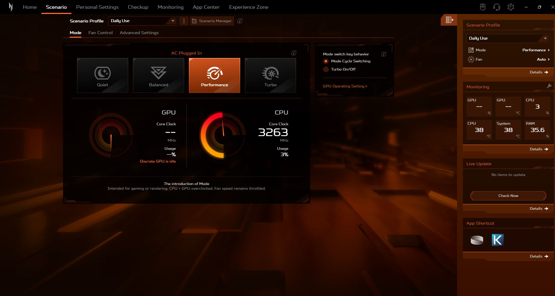 Einzig im Sleep verbraucht der Gamer mit 8 W deutlich zu viel, die Lüfter touren periodisch auf. Betreibt man einen externen Monitor per HDMI, so ist die dGPU aktiv.