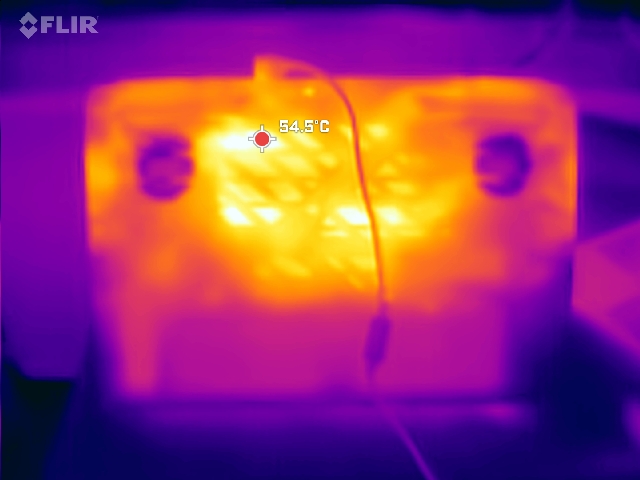 (-) Auf der Unterseite messen wir eine maximalen Wert von 51 °C (im Vergleich zum Durchschnitt von 43.3 °C).
