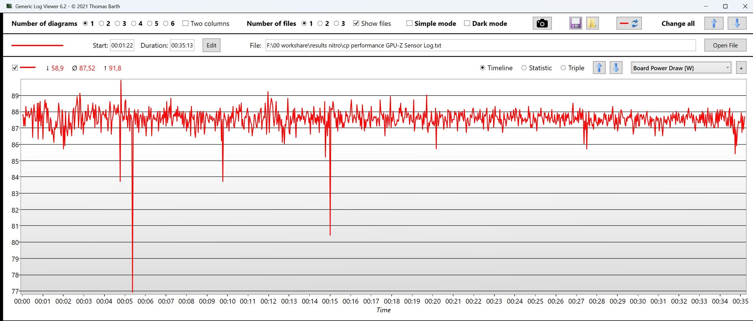Tatsächlich verbraucht unser V 17 beim Gaming deutlich weniger Strom als die etwas stärkeren Konkurrenten. Auch das 135-W-Netzteil zeigt, dass das Nitro auf leisen und sparsamen Gaming-Spaß ausgelegt ist, die Lastspitzen von maximal 131 W fängt es gut ab.