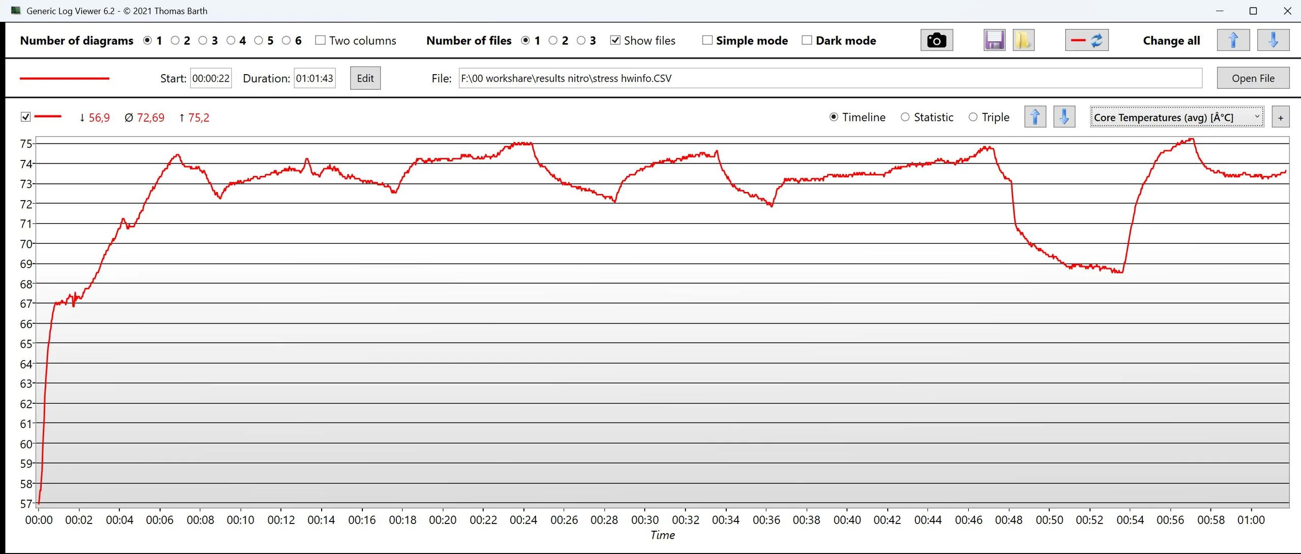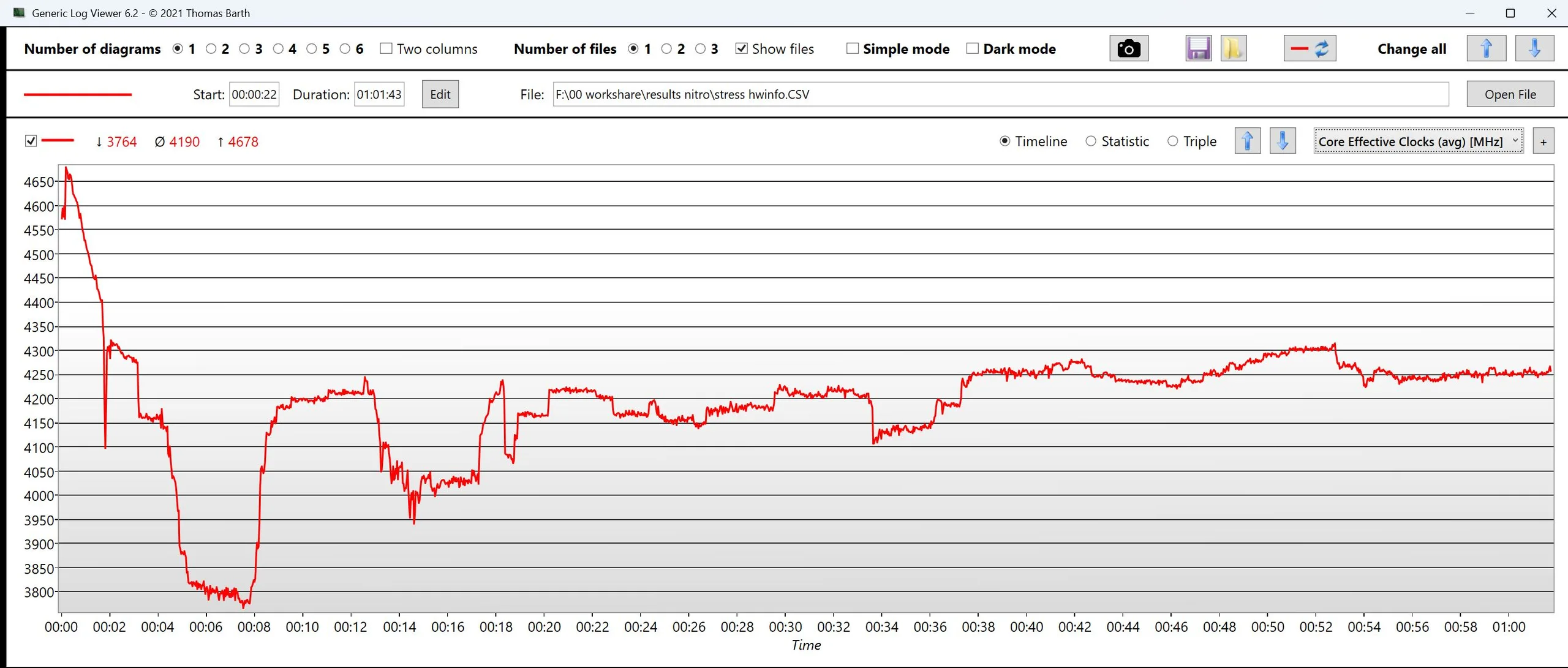 | CPU Clock (GHz) | GPU Clock (MHz) | Average CPU Temperature (°C) | Average GPU Temperature (°C) | |