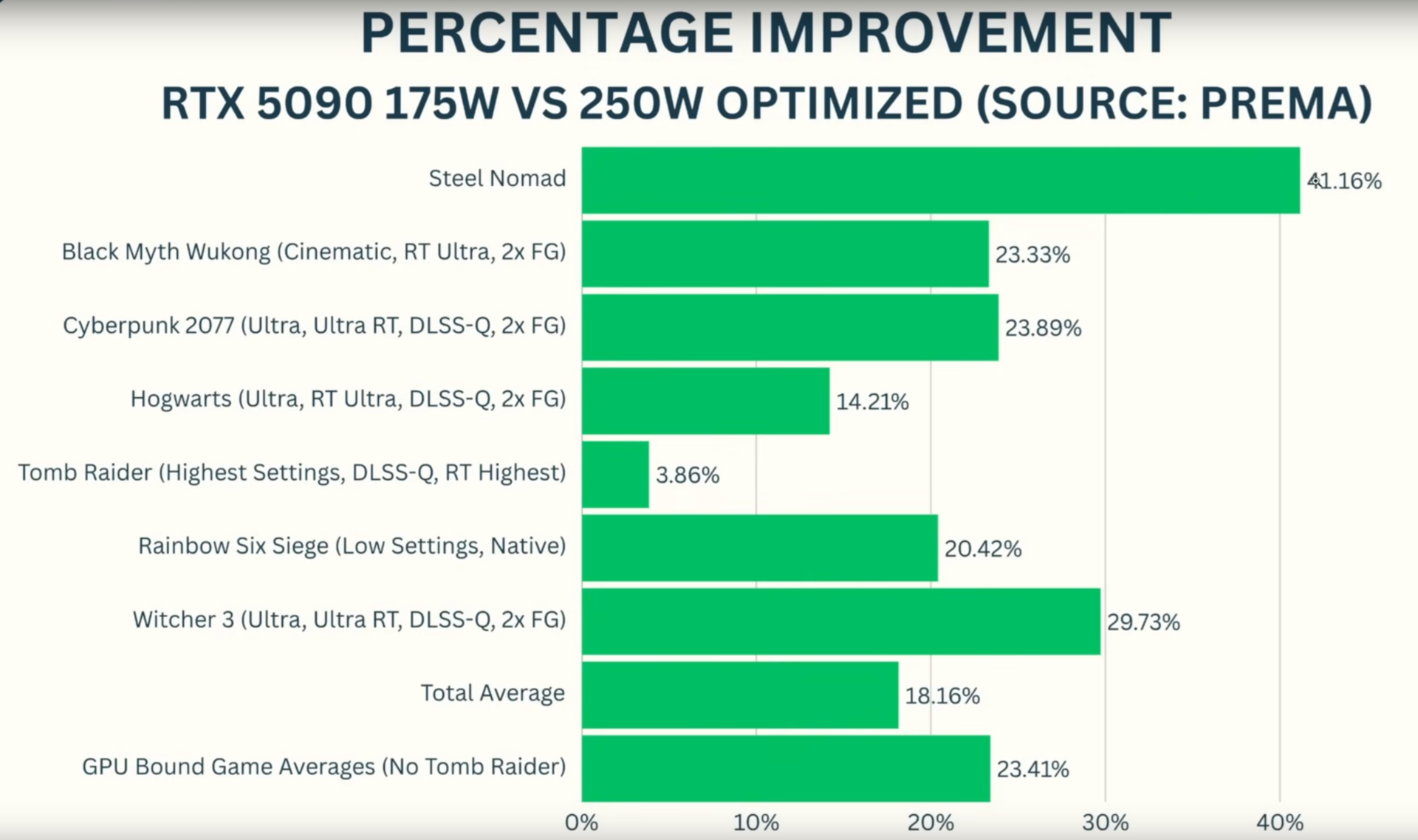 Die Ergebnisse in regulären Gaming-Benchmarks sind jedoch weniger beeindruckend, wo die modifizierte RTX 5090 zwischen 3,83 und 29,7 Prozent mehr Leistung abliefern konnte. Nichtsdestotrotz wird damit bewiesen, dass mobile GPUs durch ihre limitierte Leistungsaufnahme ausgebremst werden, und dass man auch in der Praxis eine ähnliche Performance wie die Desktop-Variante erreichen kann.