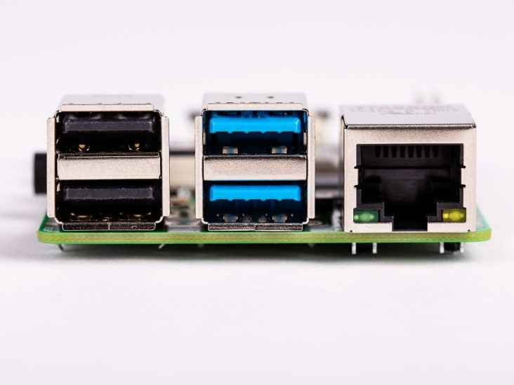 Auch bei den Anschlüssen hat sich einiges getan. So gibt es jetzt 2x USB 3.0 und 2x USB 3.2-Anschlüsse in der Type A-Ausführung. Zusätzlich verfügt der neue Raspberry Pi 4B über zwei microHDMI-Ausgänge, mit denen 4k-Monitore mit 60hz angesteuert werden können, was ebenfalls ein Novum darstellt. Dies dürfte dazu führen, dass der Raspberry Pi jetzt auch als Multimedia-Rechner in einem modernen Setup genutzt werden kann. Hierbei dürfte auch helfen, dass der verbaute Grafikchip 4K-H.265- sowie 1080p60-H.264-Videoinhalte dekodieren kann. Allerdings lassen sich natürlich auch weiterhin die klassischen kleinen LCD-Displays über den 4-poligen Klinkenstecker per Composite-Videosignal ansteuern. Als Speicher kommen immer noch microSD-Karten zum Einsatz.