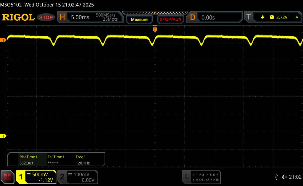 | Flackern / PWM festgestellt | 120 Hz Amplitude: 17 % Secondary Frequency: 2083 Hz | ||