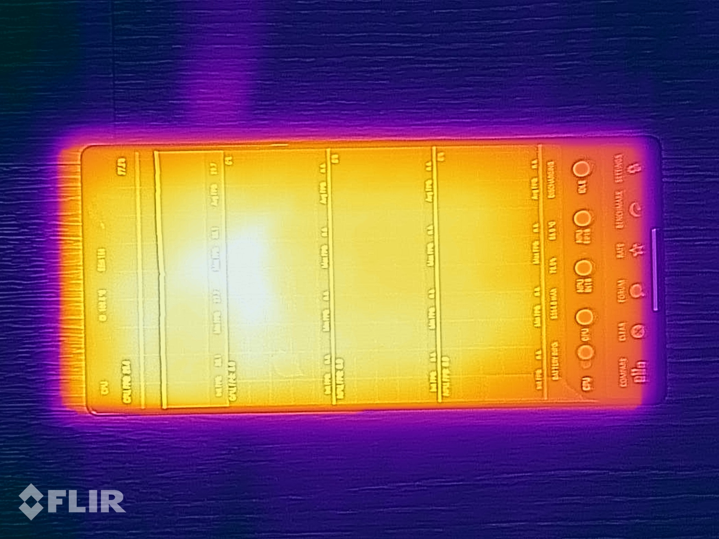 (-) Auf der Unterseite messen wir eine maximalen Wert von 54.1 °C (im Vergleich zum Durchschnitt von 34 °C).