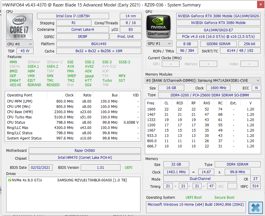 | Razer Blade 15 Advanced Model Early 2021 (Max.) | |