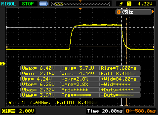 | 16 ms ... steigend ↗ und fallend ↘ kombiniert | ↗ 7.6 ms steigend | |