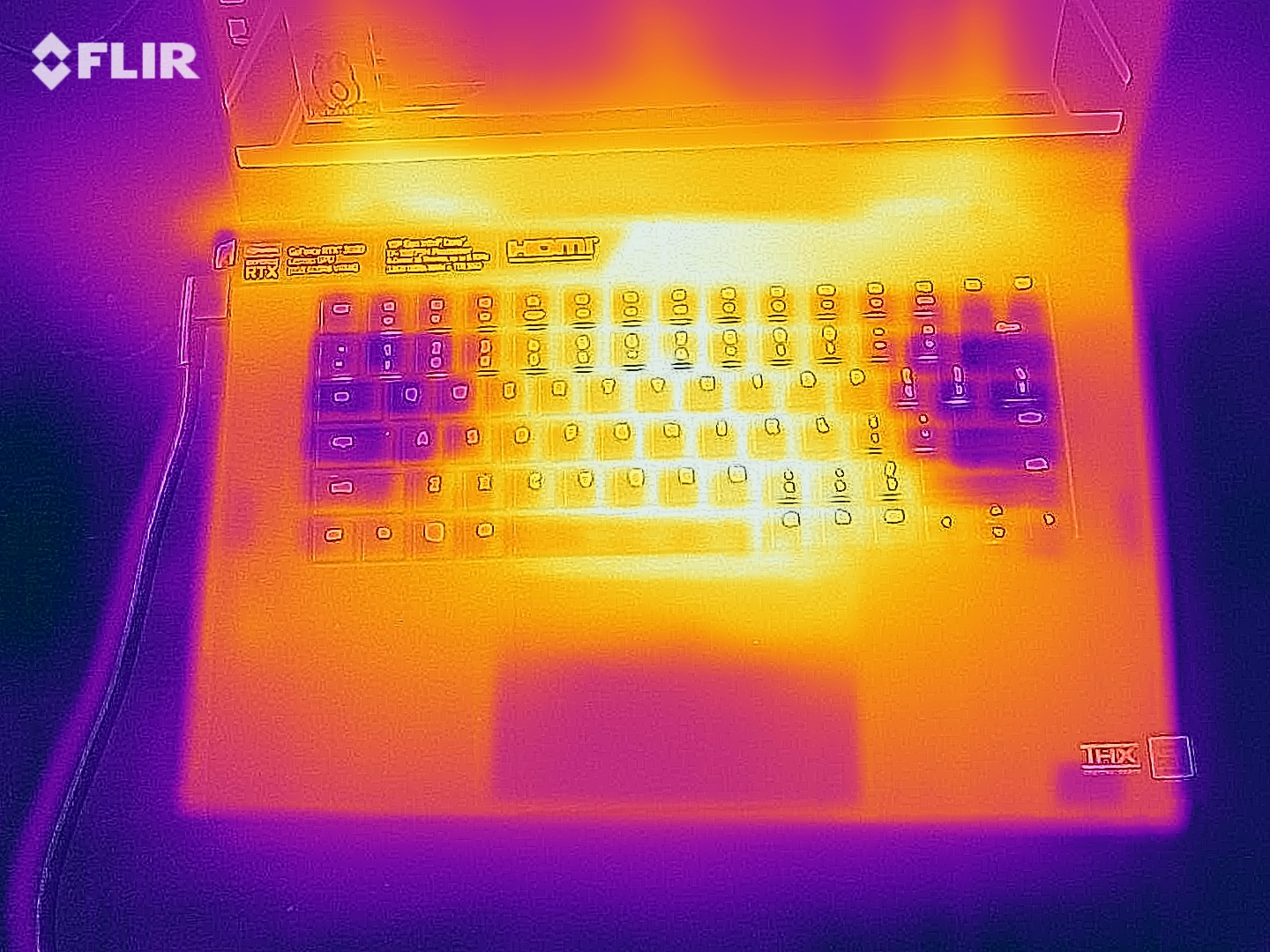 (-) Die maximale Temperatur auf der Oberseite ist 49 °C. Im Vergleich liegt der Klassendurchschnitt bei 40.4 °C (von 21.2 bis 68.8 °C für die Klasse Gaming).
