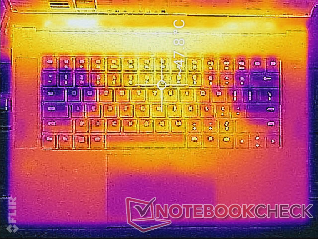 (-) Die maximale Temperatur auf der Oberseite ist 50 °C. Im Vergleich liegt der Klassendurchschnitt bei 40.4 °C (von 21.2 bis 68.8 °C für die Klasse Gaming).