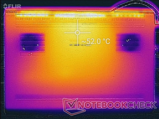(-) Auf der Unterseite messen wir eine maximalen Wert von 52.2 °C (im Vergleich zum Durchschnitt von 43.3 °C).