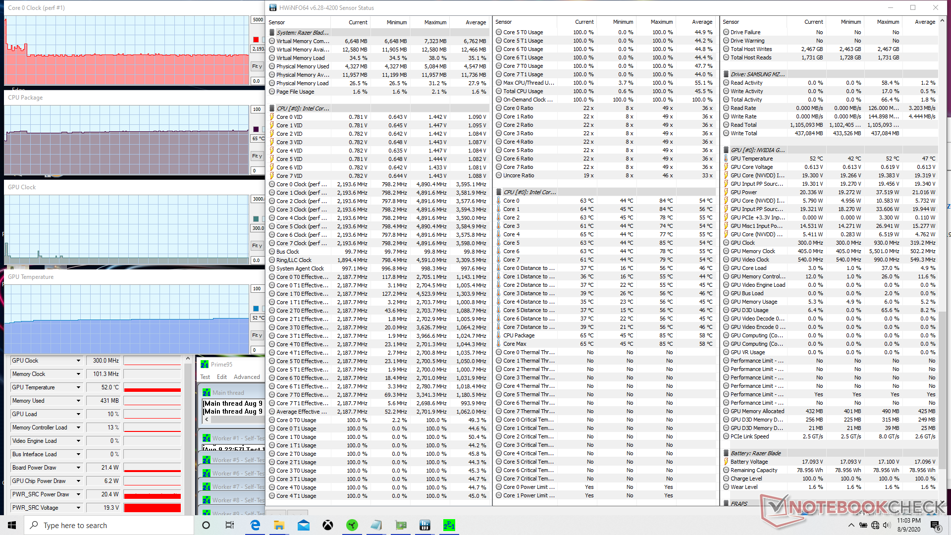 | Razer Blade 15 RTX 2070 Super Max-Q GeForce RTX 2070 Super Max-Q, i7-10875H, Samsung SSD PM981a MZVLB512HBJQ | MSI GS66 Stealth 10SFS GeForce RTX 2070 Super Max-Q, i9-10980HK, Samsung SSD PM981 MZVLB1T0HALR | Asus Zephyrus S GX502GW GeForce RTX 2070 Mobile, i7-9750H, 2x Intel SSD 660p SSDPEKNW512G8 (RAID 0) | Gigabyte Aero 15 Classic-XA GeForce RTX 2070 Max-Q, i7-9750H, Intel SSD 760p SSDPEKKW512G8 | Lenovo Legion Y740-15ICHg GeForce RTX 2070 Max-Q, i7-9750H, WDC PC SN520 SDAPMUW-128G | Razer Blade 15 RTX 2080 Super Max-Q GeForce RTX 2080 Super Max-Q, i7-10875H, Samsung PM981a MZVLB1T0HBLR | |