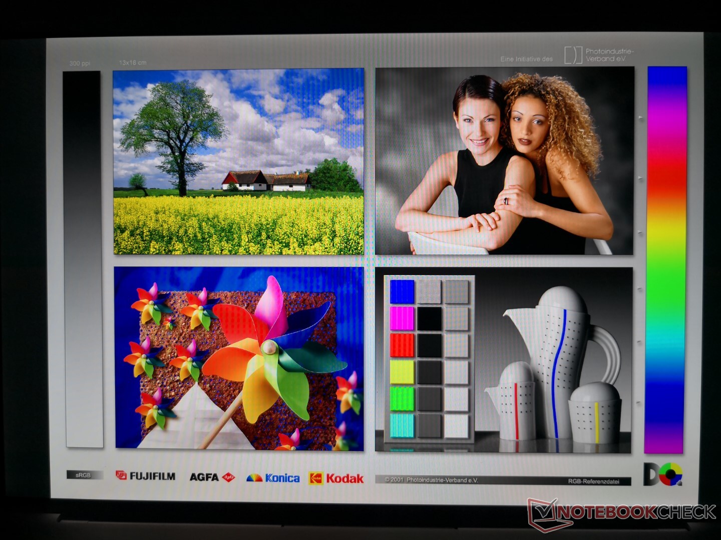 Unser X-Rite Farbmessgerät zeigt, dass das Display, wie in der Werbung versprochen, bereits ab Werk gut kalibriert ist, wir messen durchschnittliche Graustufen- und Farbabweichungen von nur 1,3 und 1,39, hinzu kommt ein nahezu perfekter Gammawert von 2,2. Ein Versuch einer erneuten Kalibrierung bringt praktisch keine Verbesserung mehr.