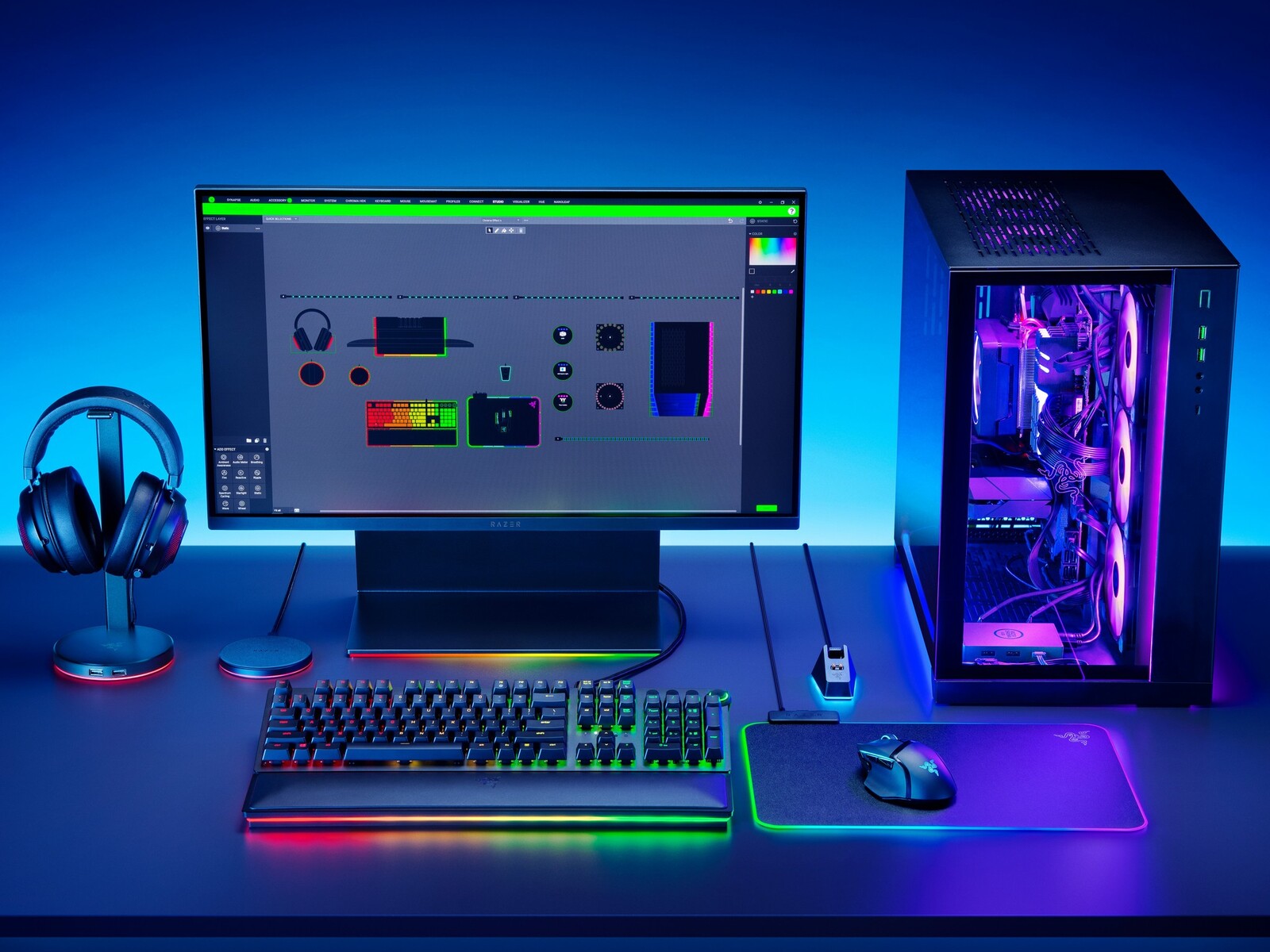 Mit dem neuen ARGB-Controller lässt sich Chroma-kompatible Peripherie mit Geräten anderer Hersteller über Synapse 3 synchronisieren, ohne auf zusätzliche RGB-Software zurückgreifen zu müssen. Der Controller verfügt über SSD-Befestigungspunkte, um in jedes Setup integriert zu werden, und sechs ARGB-Anschlüsse, damit Modder unter anderem ARGB-Lüfter und -Lichtleisten anschließen können. Der Controller adressiert jede einzelne LED der ARGB-Komponenten und erlaubt es, die angeschlossenen Geräte über Chroma Studio in Razer Synapse 3 zu individualisieren. Neben der einfacheren Steuerung lassen sich auf diese Weise Komponenten von Partnern, wie Enermax, Phanteks, SilverStone Technology, Teamgroup, LianLi und ThermalTake, in die Beleuchtung Chroma-fähiger Spiele sowie Synapse 3-kompatibler Peripherie und Smart Home-Geräte integrieren.