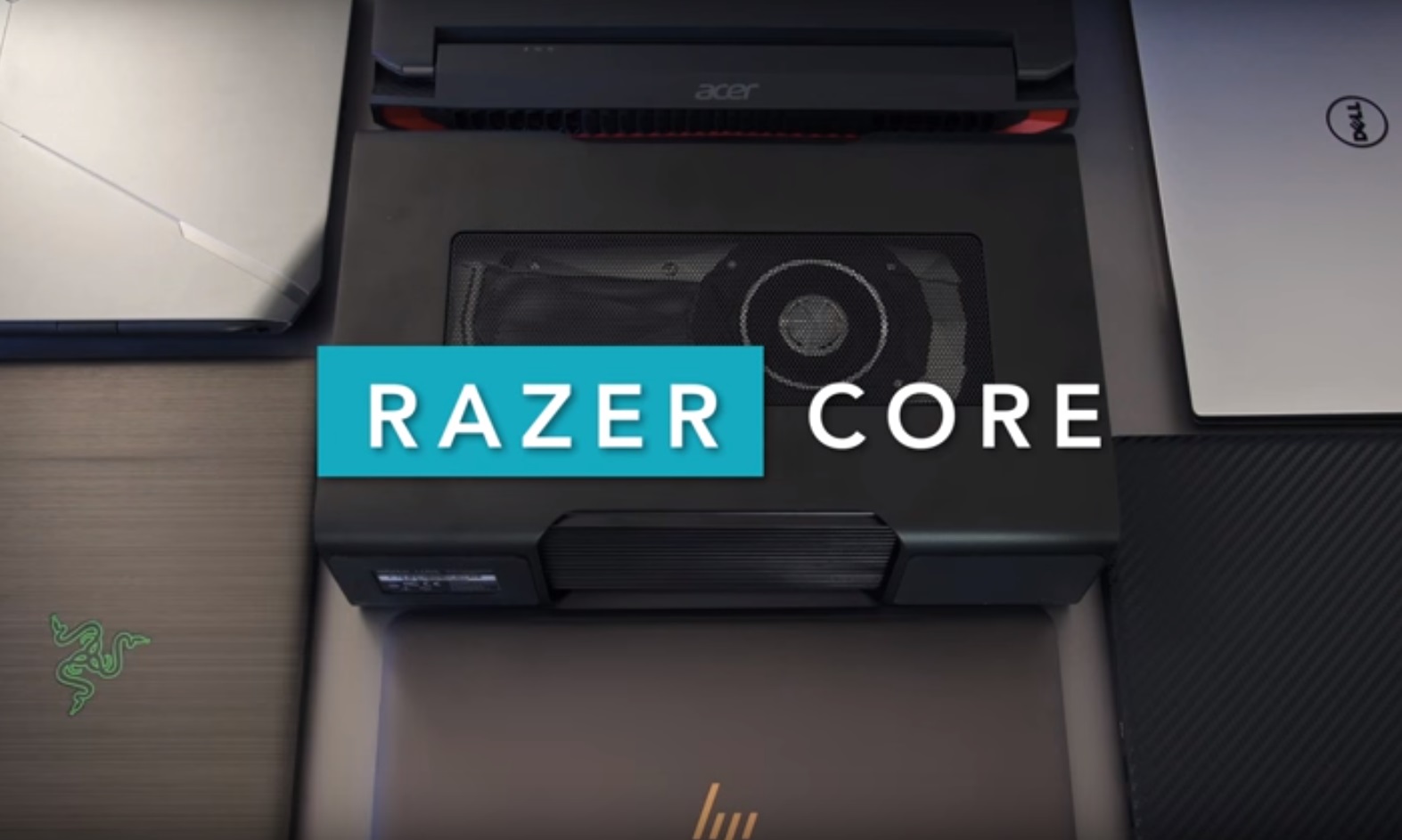 Thunderbolt 3-fähige Notebooks können über den USB Type-C Anschluss eine Datenübertragungsrate von bis zu 40 Gbps erreichen, das scheint wie geschaffen dafür zu sein, Notebooks mit externen Docks zu mehr Grafikpower zu verhelfen. Der erste Hersteller, der ein entsprechendes Produkt angekündigt und mittlerweile auch am Markt hat, ist der amerikanische Hersteller Razer, bekannt für seine Gaming-Produkte. Das Razer Core ist ein Thunderbolt 3-Dock mit einem USB Type-C Anschluss, 4 USB 3.0 Type-A Ports und einem LAN-Anschluss. Es kann eine Full-length, double-wide PCI-Express x16 Grafikkarte aufnehmen und wird mit einem 500 Watt Netzteil ausgeliefert.