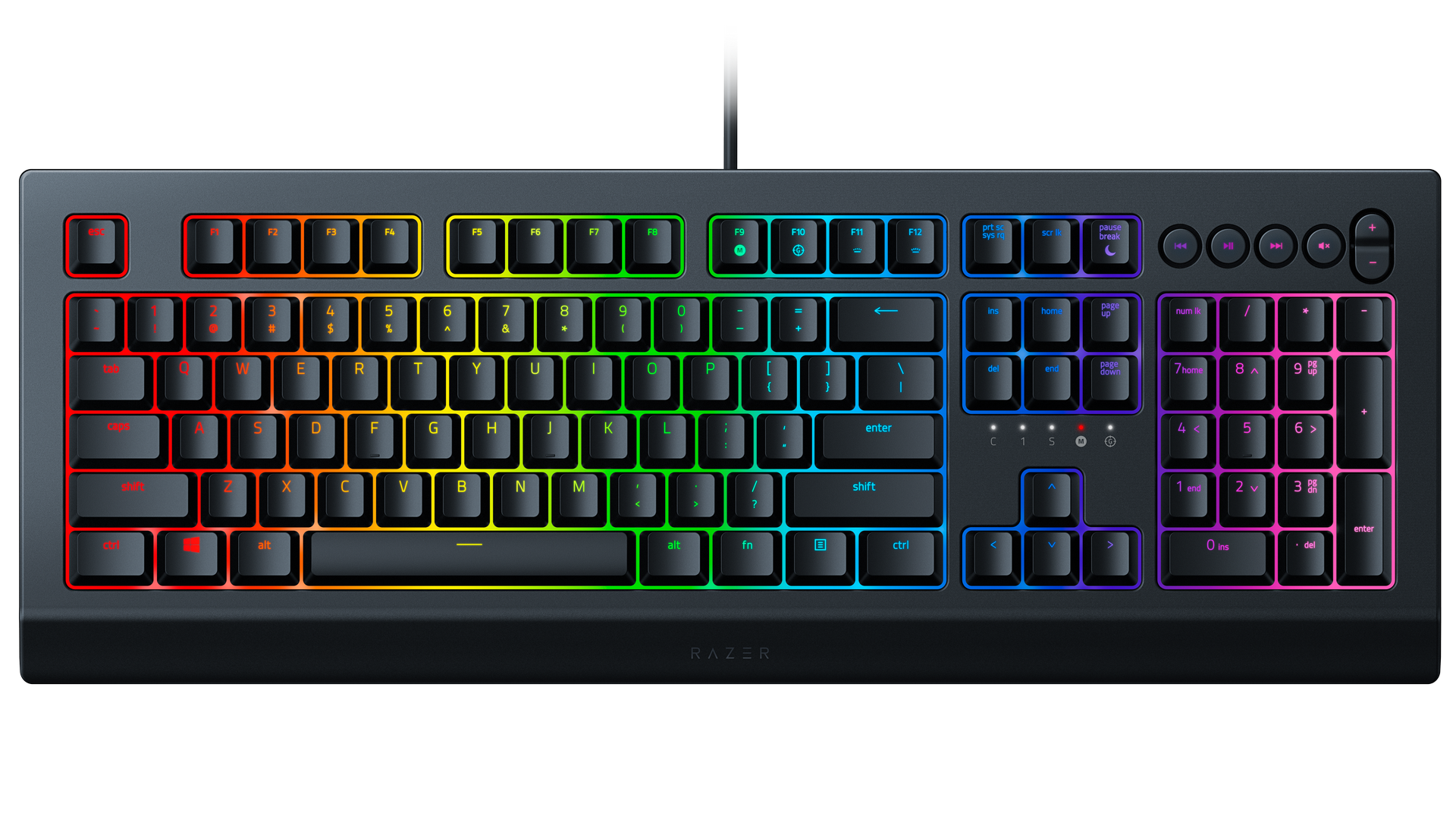 Die neue Razer Cynosa V2 verfügt über eine Einzeltasten-Beleuchtung und Razer Chroma RGB. Die Tastatur-Beleuchtung der Cynosa V2 lässt sich problemlos mit dem stets wachsenden Portfolio an Chroma-kompatiblen Games synchronisieren. Im Vergleich zur Chroma hat Razer dem neuen Gamingbrett eine dedizierte Mediensteuerung hinzugefügt.