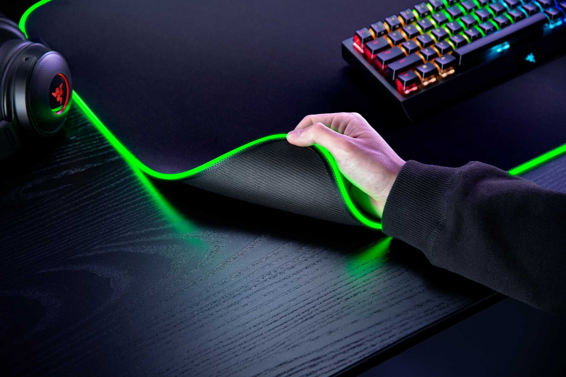 Mit den beiden neuen riesigen Chroma-Mausmatten Strider Chroma und Goliathus Chroma 3XL präsentiert der Spezialist für Gaming-Zubehör Razer zwei Premium-Mauspads, die den Gaming-Desktop zum bunt leuchtenden Eyecatcher machen. Vor allem für Streamer und Gamer, die bereits über Chroma Gaming-Zubehör von Razer verfügen, machen die beiden neuen Razer XXL-Mauspads das Lichtshow-Setup perfekt.
