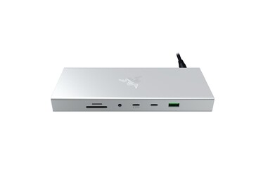 Das Dock besitzt einen HDMI 2.1-Anschluss, der einen 4K-Monitor mit einer Bildfrequenz von 120 Hz unterstützt, sowie DisplayPort 1.4 mit Unterstützung für einen 4K-Monitor mit 240 Bildern pro Sekunde. Werden zwei Monitore zeitgleich angeschlossen, kann maximal ein Bildschirm mit 120 Hz und einer mit 60 Hz betrieben werden. Das Dock besitzt darüber hinaus einen SD- und einen microSD-Kartenleser sowie einen 3,5 mm Kopfhöreranschluss an der Vorderseite. An der rechten Seite des Aluminium-Gehäuses befindet sich ein Power Button, der es ermöglicht, Geräte auch dann zu laden, wenn kein Computer angeschlossen ist.