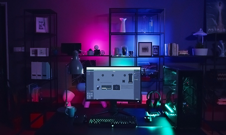 Razer Aether Standing Light Bars und Razer Iskur V2 X Stuhl