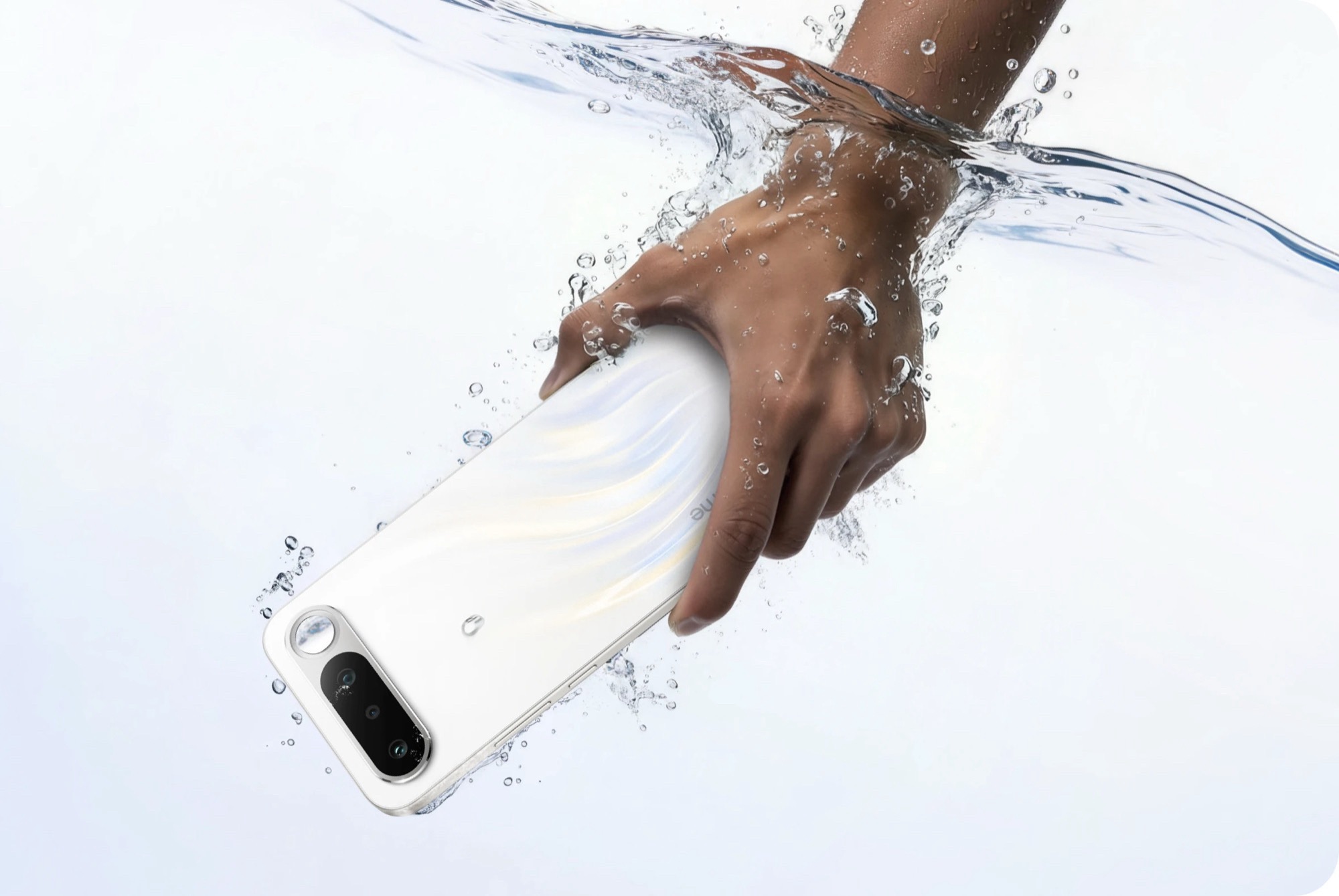 Das pillenförmige Kameramodul auf der Rückseite sieht so aus, als würde dieses drei Kameras beherbergen, zwei davon sind mit 2 MP Sensoren aber eher dekorativ. Die 50 Megapixel f/1.8 Hauptkamera soll durch den Spiegel auch für Selfies verwendet werden können – ein Feature, das sich Realme offenbar von Sofortbild-Kameras geliehen hat. Alternativ steht auch eine 50 MP f/2.4 Frontkamera zur Verfügung. Das Gehäuse des Realme 16 ist nach IP69 zertifiziert und somit wasserfest.