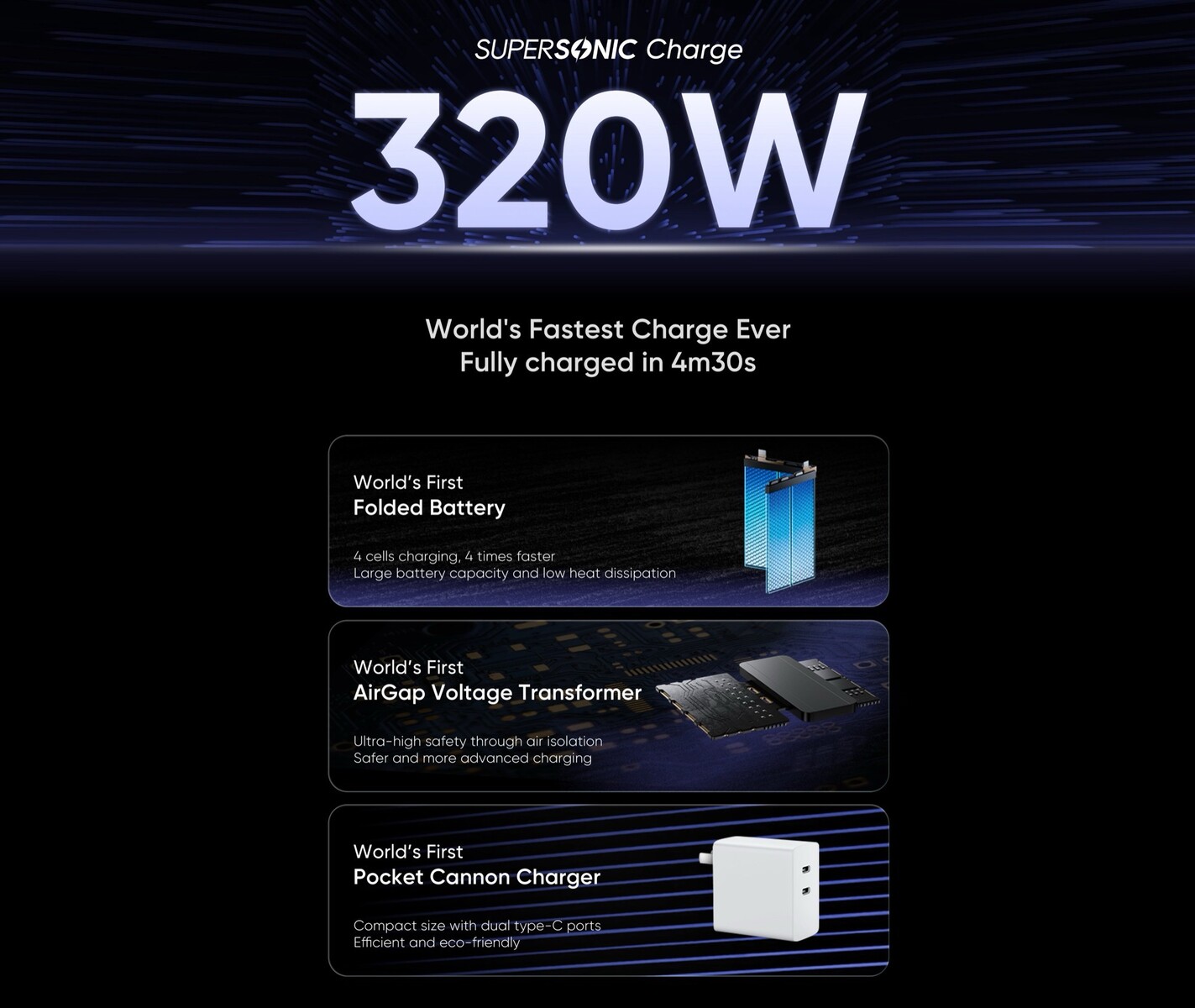320W SuperSonic Charge is officially unveiled today! Click the video to learn more about the technology behind it and see how long it takes to charge a phone fully!#realme828Fanfest #320WFastestCharge pic.twitter.com/osefpxcRlT