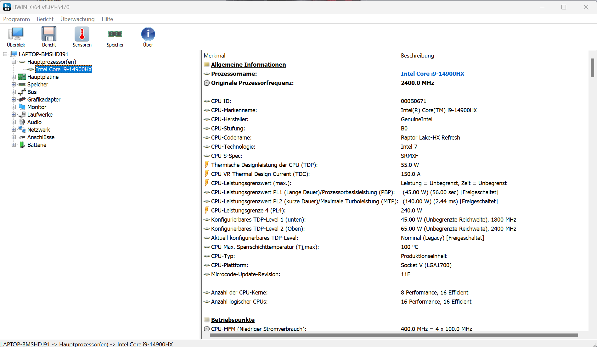 | Nubia RedMagic Titan 16 Pro i9-14900HX, GeForce RTX 4060 Laptop GPU, 80.1 Wh | Lenovo Legion Pro 5 16IRX9 G9 i7-14700HX, GeForce RTX 4060 Laptop GPU, 80 Wh | HP Victus 16 (2024) i7-14700HX, GeForce RTX 4060 Laptop GPU, 83 Wh | Acer Predator Helios Neo 16 (2024) i7-14700HX, GeForce RTX 4070 Laptop GPU, 90.61 Wh | Schenker XMG Pro 16 Studio (Mid 24) i9-14900HX, GeForce RTX 4070 Laptop GPU, 73 Wh | Gigabyte G6X 9KG (2024) i7-13650HX, GeForce RTX 4060 Laptop GPU, 73 Wh | Durchschnitt der Klasse Gaming | |