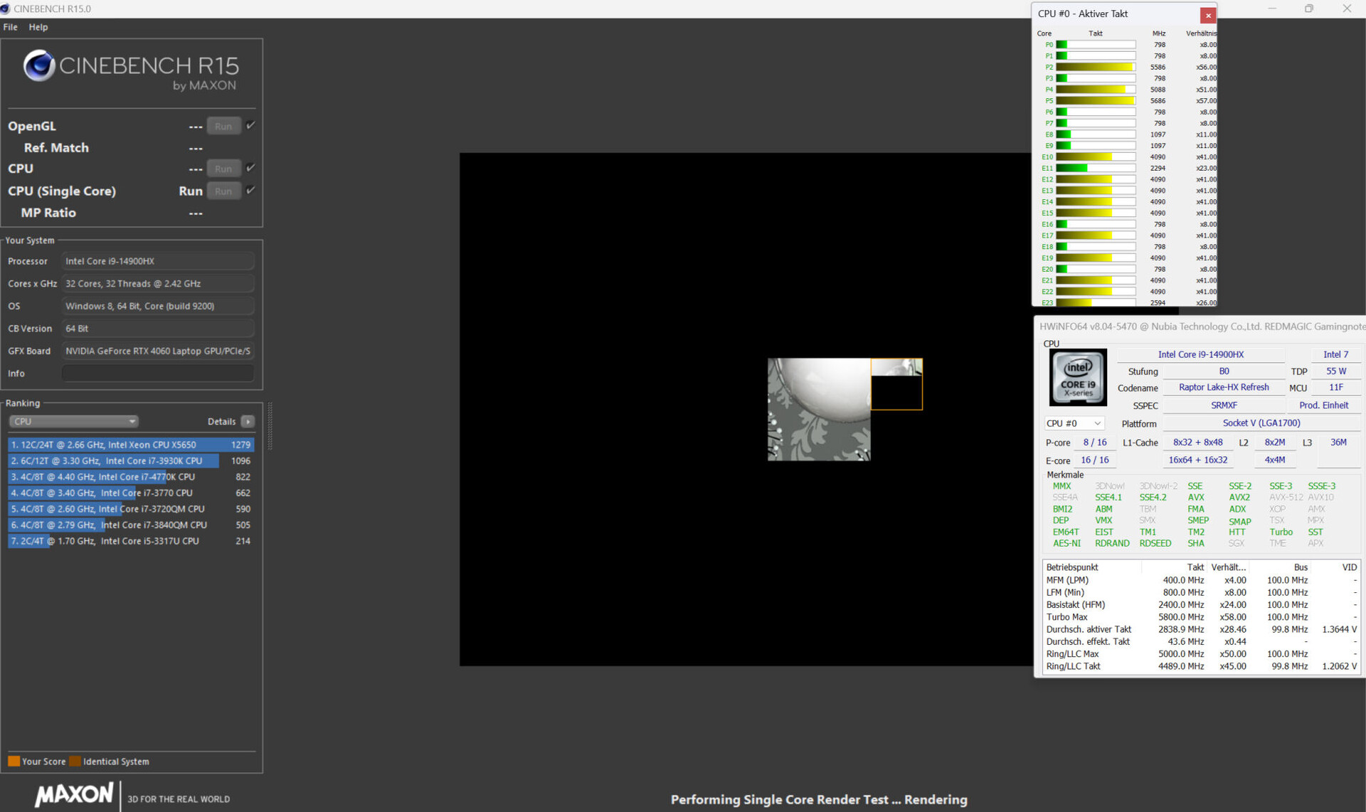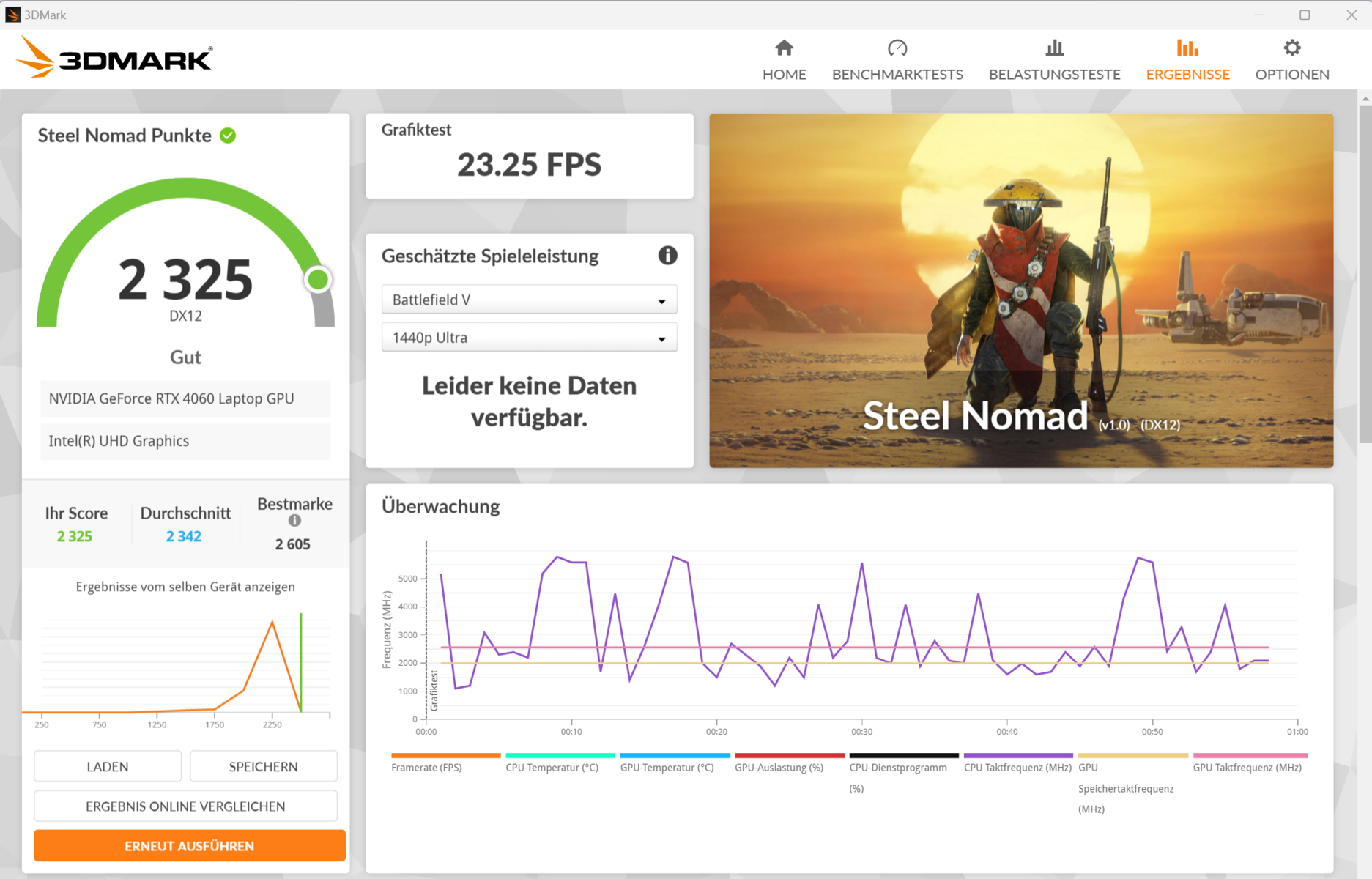 | Nubia RedMagic Titan 16 Pro i9-14900HX, GeForce RTX 4060 Laptop GPU | Lenovo Legion Pro 5 16IRX9 G9 i7-14700HX, GeForce RTX 4060 Laptop GPU | HP Victus 16 (2024) i7-14700HX, GeForce RTX 4060 Laptop GPU | Acer Predator Helios Neo 16 (2024) i7-14700HX, GeForce RTX 4070 Laptop GPU | Schenker XMG Pro 16 Studio (Mid 24) i9-14900HX, GeForce RTX 4070 Laptop GPU | Gigabyte G6X 9KG (2024) i7-13650HX, GeForce RTX 4060 Laptop GPU | Durchschnittliche NVIDIA GeForce RTX 4060 Laptop GPU | Durchschnitt der Klasse Gaming | |