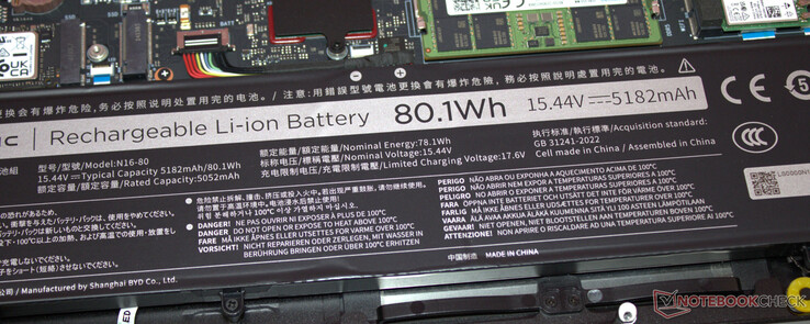 Die Akkulaufzeiten reißen niemanden vom Hocker. Hier darf von einem Gaming-Laptop mit 80-Wh-Akku (etwas) mehr erwartet werden. Immerhin: Der verbaute USB-C-Port (Thunderbolt 4) unterstützt Power Delivery (und den DP Alt-Mode). Somit müsste das wuchtige, proprietäre Netzteil nicht unbedingt mitgeführt werden.