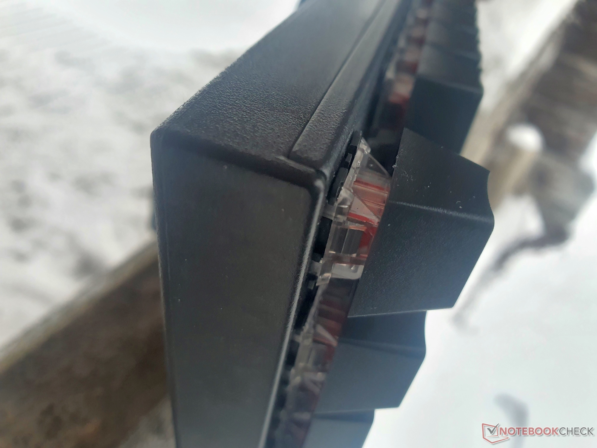 Zum Vergleich: Cherry MX Brown Switches benötigen 55 g an Betätigungskraft und die Blue Switches 60 g. Die Tasten sind somit sehr leichtgängig, sodass ein sehr schnelles Tippen für lange Zeitperioden und ein schnelles Betätigen beim Gaming möglich sind. Der Hub gestaltet sich zudem linear, was viele Nutzer bevorzugen. Wir ziehen den leichten Stopp der Blue Switches nach den ersten ~2 mm des Hubwegs vor, sowie dessen taktileres und "clicky" Verhalten.