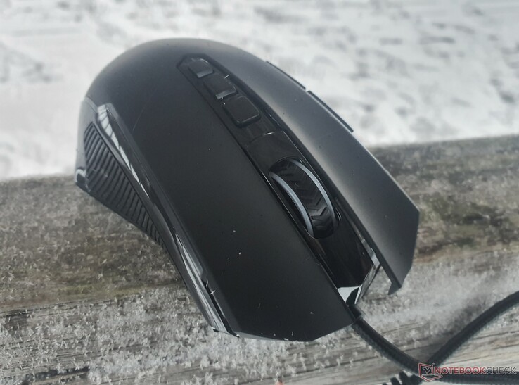 Die RGB beleuchtete Ranger M910 Gaming-Maus besteht komplett aus matt-schwarzem Kunststoff mit einer guten Haptik und wertigen Verarbeitung. Sie ist sowohl für Rechtshänder als auch für Linkshänder geeignet. Alle neun Tasten sitzen gut im Gehäuse, inklusive des leicht gummierten Mausrades. Nur der Kunststoff an den Seiten wirkt etwas billig. Zudem existieren dort wenige Kanten, die uns jedoch keine Probleme bereiteten.