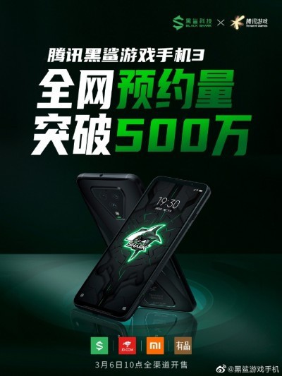 Stolz postete das Unternehmen ein Bild auf Weibo, dass ihr neues Gaming-Smartphone Black Shark 3 Pro ganze 5 Millionen Vorbestellungen erreicht habe, und das in nur 48 Stunden. Zu beachten ist allerdings, dass es sich hierbei nur um recht unverbindliche Registrierungen handelt, eine verpflichtende Bezahlung erfolgte noch nicht.