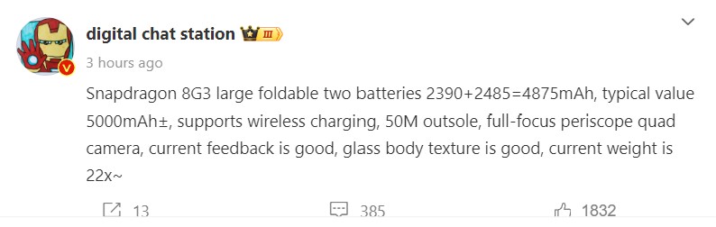 Sowohl der Nachfolger des Mix Fold 3 als auch das erste Xiaomi Klapphandy, potentiell Mix Flip genannt, sollen wohl auch eine sehr ähnliche Kamera-Hardware aufweisen, wobei ersteres natürlich mehr Sensoren bieten wird. Konkret steckt in beiden Foldables laut aktueller Leaks, auch von einem anderen Leaker auf Weibo (siehe Screenshots oben), der gleiche 1/1.55 Zoll große 50 Megapixel Omnivision OV50E Sensor mit OIS für die Hauptkamera sowie ein 1/2.8 Zoll 60 Megapixel OV60A für zweifachen Zoom und Porträt-Aufnahmen.