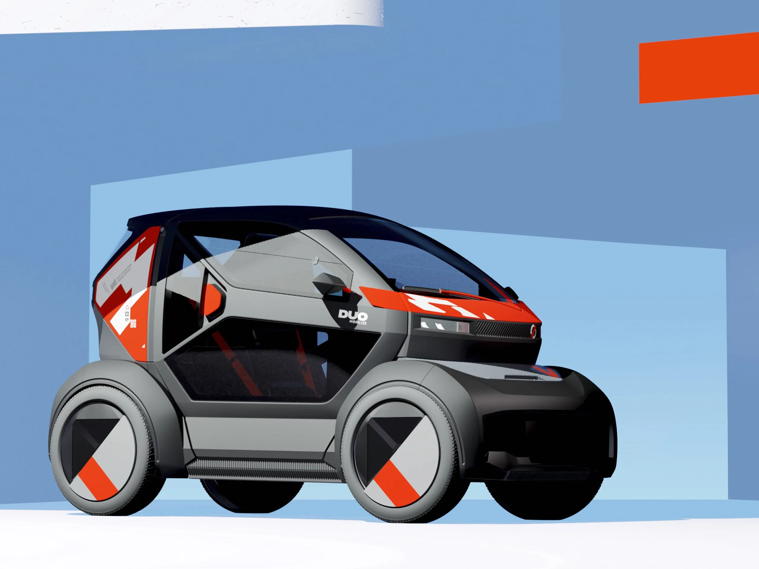 Dank der geringen Abmessungen mit einer Länge von 2.43 Metern und einer Breite von 1.3 Metern soll der Duo in der Stadt immer einen Platz finden. Für den Zugang auch in der engsten Parklücke sollen die Türen sorgen, die nach oben aufschwingen.