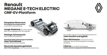 Im Rahmen seiner Elektromobilitätsstrategie Renault eWays hat der französische Autokonzern wichtige Eckpunkte für seine elektrische Flotte festgelegt. Unter anderem plant Renault bis 2025 insgesamt 10 neue vollelektrische Modelle (BEV) und nutzt die beiden neuen Plattformen CMF-EV für das C- und D-Segment sowie die CMF-BEV-Plattform für das Kleinwagensegment.
