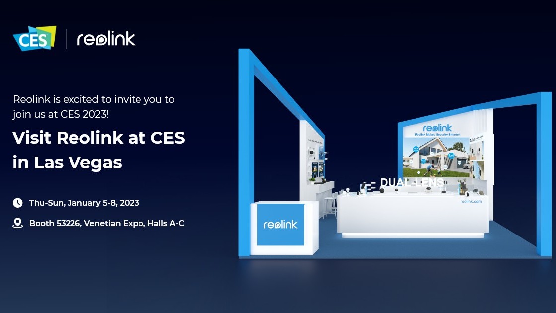 Reolink lädt Besucher der CES 2023 am Stand-Nr. 53226 in der Halle A-C der Venetian Expo ein, die neuesten Smart-Home-Sicherheitsprodukte von Reolink kennenzulernen. Auf der CES 2023 wird Reolink dieses Mal unter anderem die neuen Mitglieder der Argus Sicherheitskameraserie mit Akku, der Duo 2 Überwachungskameraserie mit Dual-Objektiv und der TrackMix Security-Cam-Serie mit Auto-Tracking vorstellen.