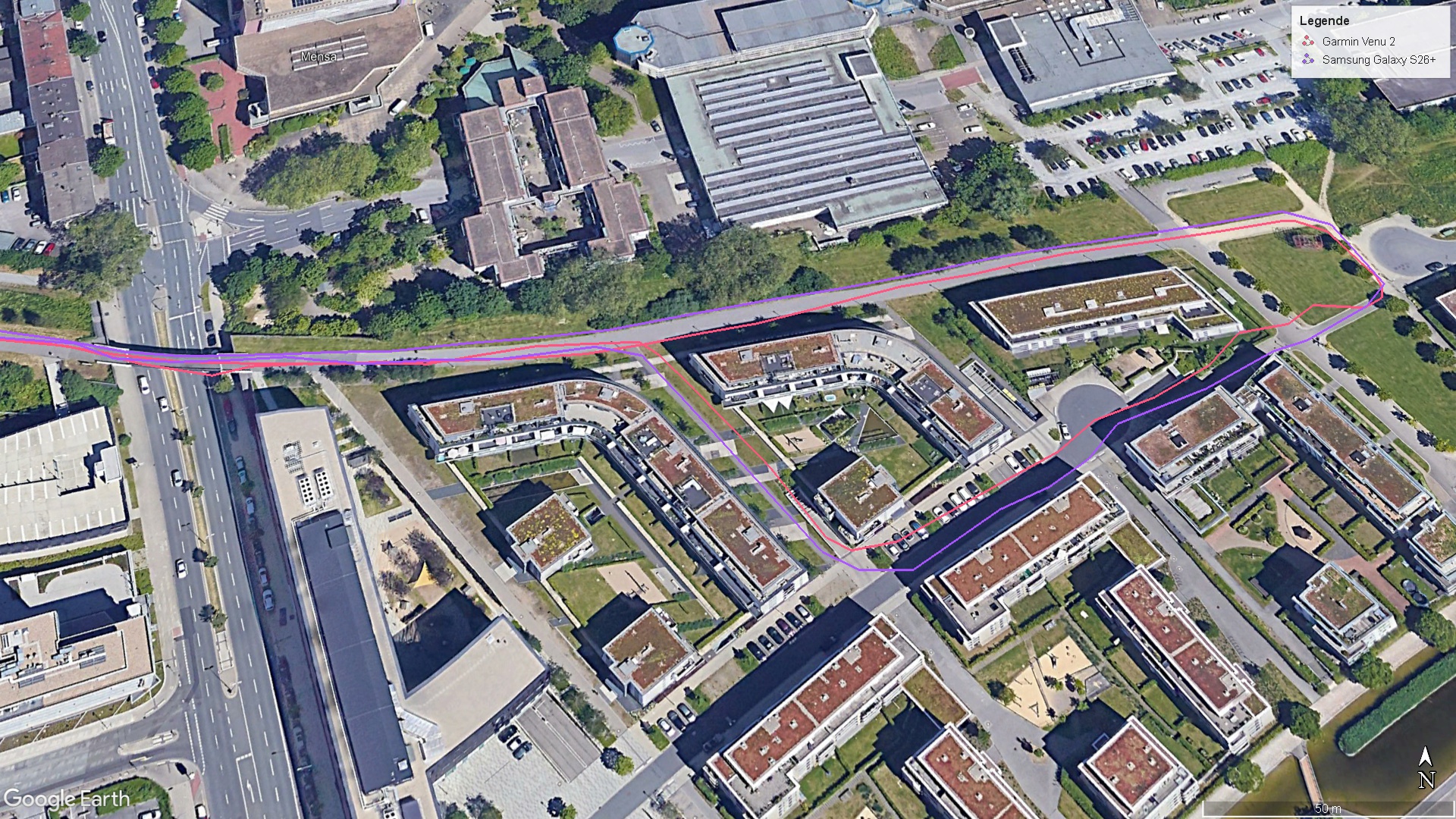 Bei einer Runde mit dem Fahrrad vergleichen wir das Samsung-Handy mit einer Garmin Venu 2. Die Abweichungen zu unserer Wegstrecke sind im Test gering und teilweise besser als bei unserer Referenz-Smartwatch.
