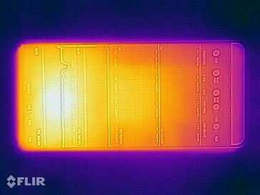 (-) Auf der Unterseite messen wir eine maximalen Wert von 46.9 °C (im Vergleich zum Durchschnitt von 34 °C).