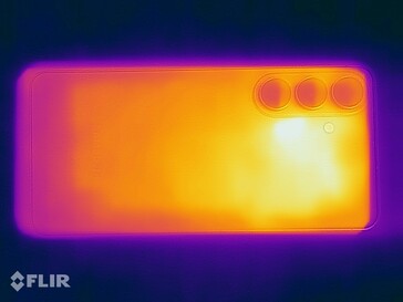 Unter andauernder Last messen wir Oberflächentemperaturen von stellenweise über 47 °C. Nicht wenig, aber auch nicht kritisch hoch. Die Kühlleistung ist ähnlich effizient wie beim Vorgänger, in den Stresstests des 3DMark kommen wir auf eine moderate Drosslung von bis zu 40 Prozent. Allerdings kann das Galay S26+ die maximale Leistung mitunter länger aufrechterhalten.