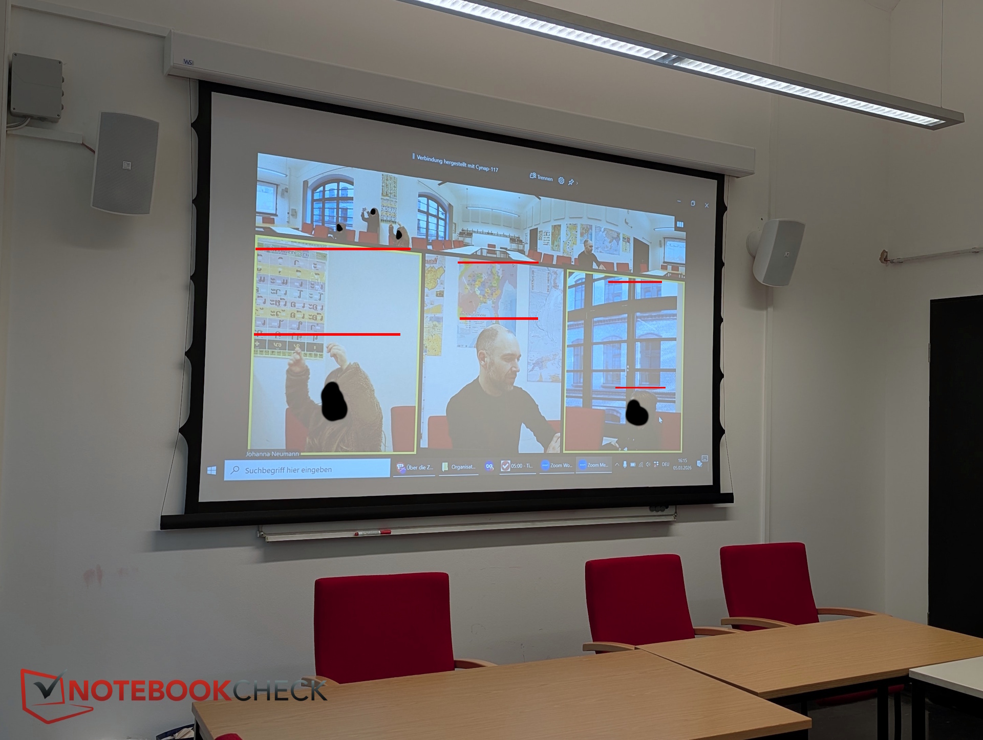 Bei wenig Licht (dunkleres Zimmer, s.o.) wirkt die Darstellung dann schnell verwaschen. Die Lichtsituation dürfte in Konferenzräumen aber kein Problem darstellen.