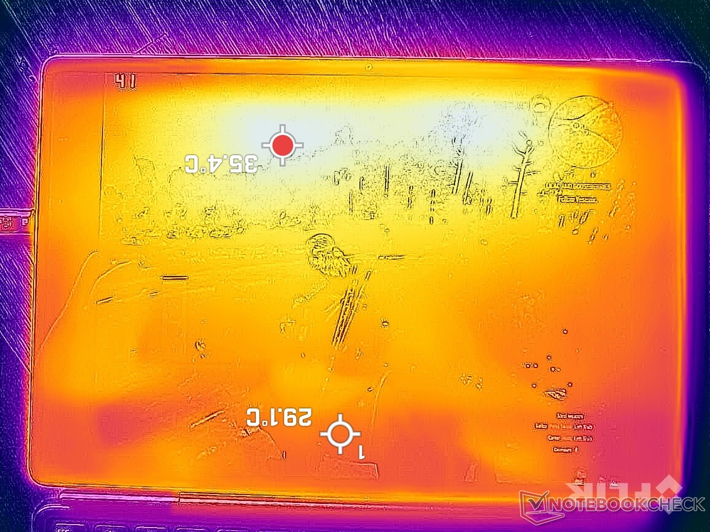 (±) Auf der Unterseite messen wir eine maximalen Wert von 40.8 °C (im Vergleich zum Durchschnitt von 33.2 °C).