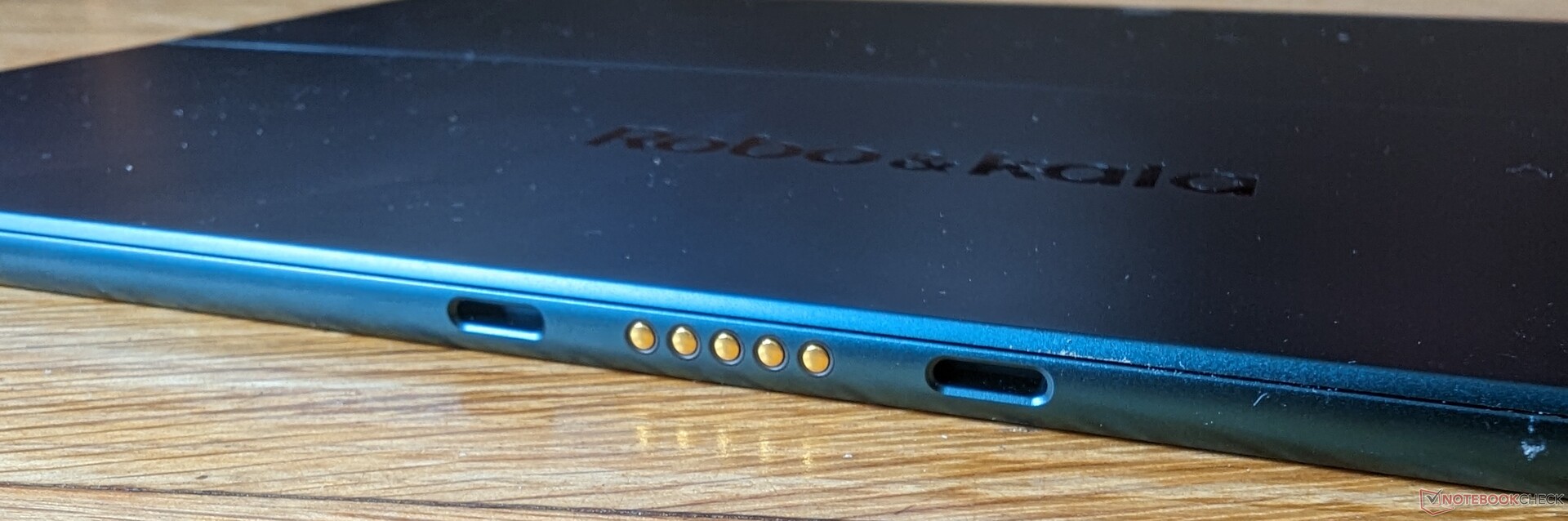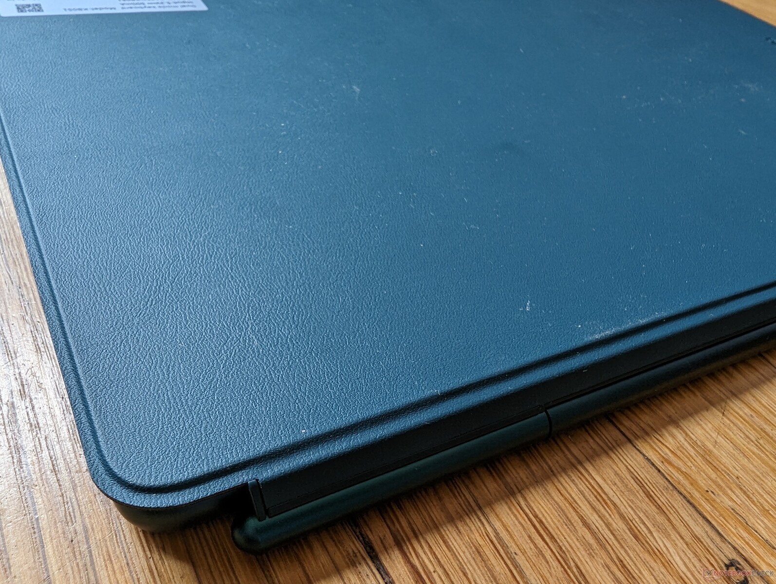Das Aluminium-Gehäuse macht einen ziemlich stabilen und robusten ersten Eindruck, wenn man bedenkt, dass es sowohl dünner (und somit leichter) ist und auch dünnere Kanten besitzt. Die Tastatur ist grundsätzlich stabil gefertigt, jedoch lassen sich die Connection-Pins zu leicht vom Tablet lösen.