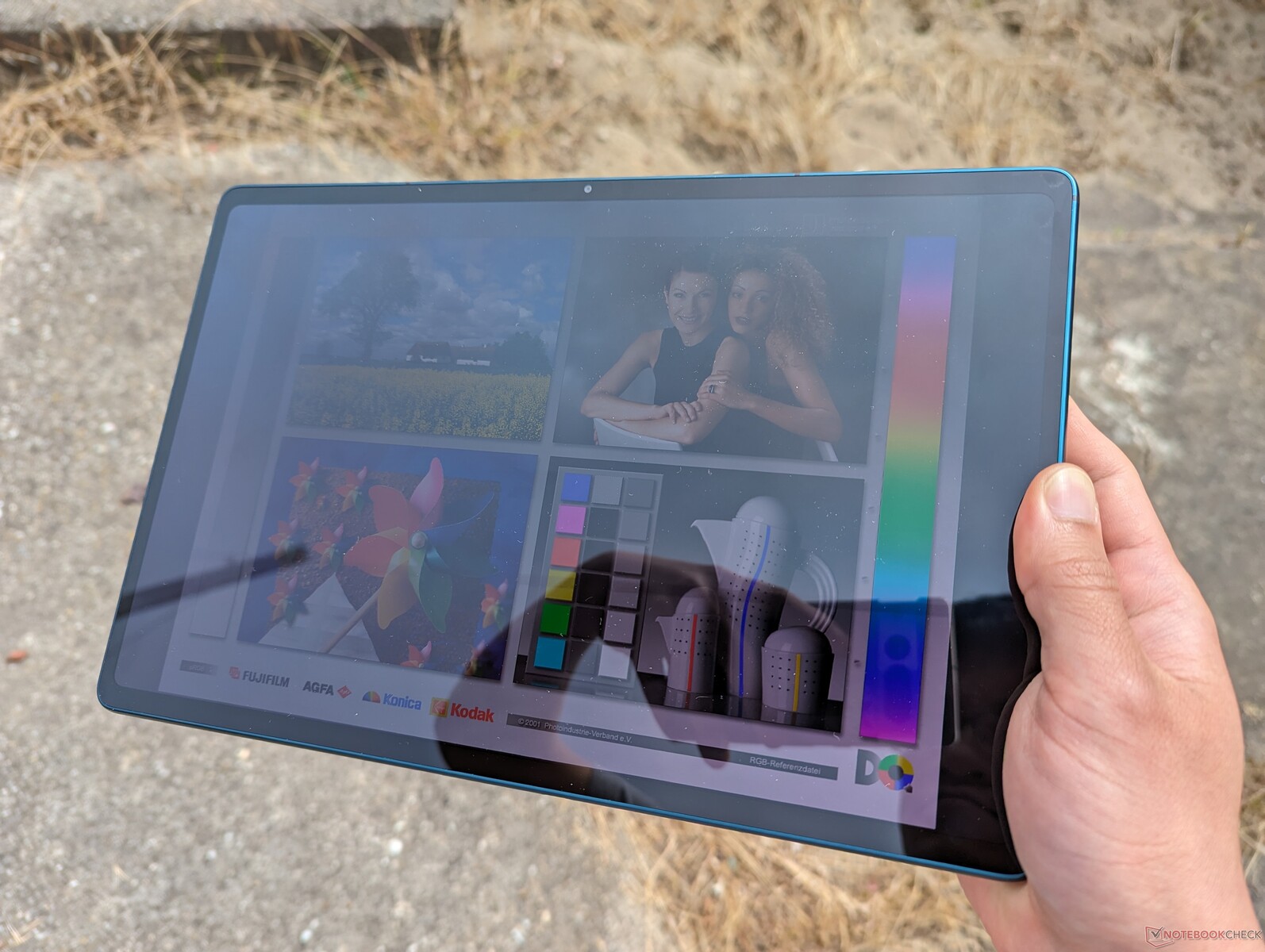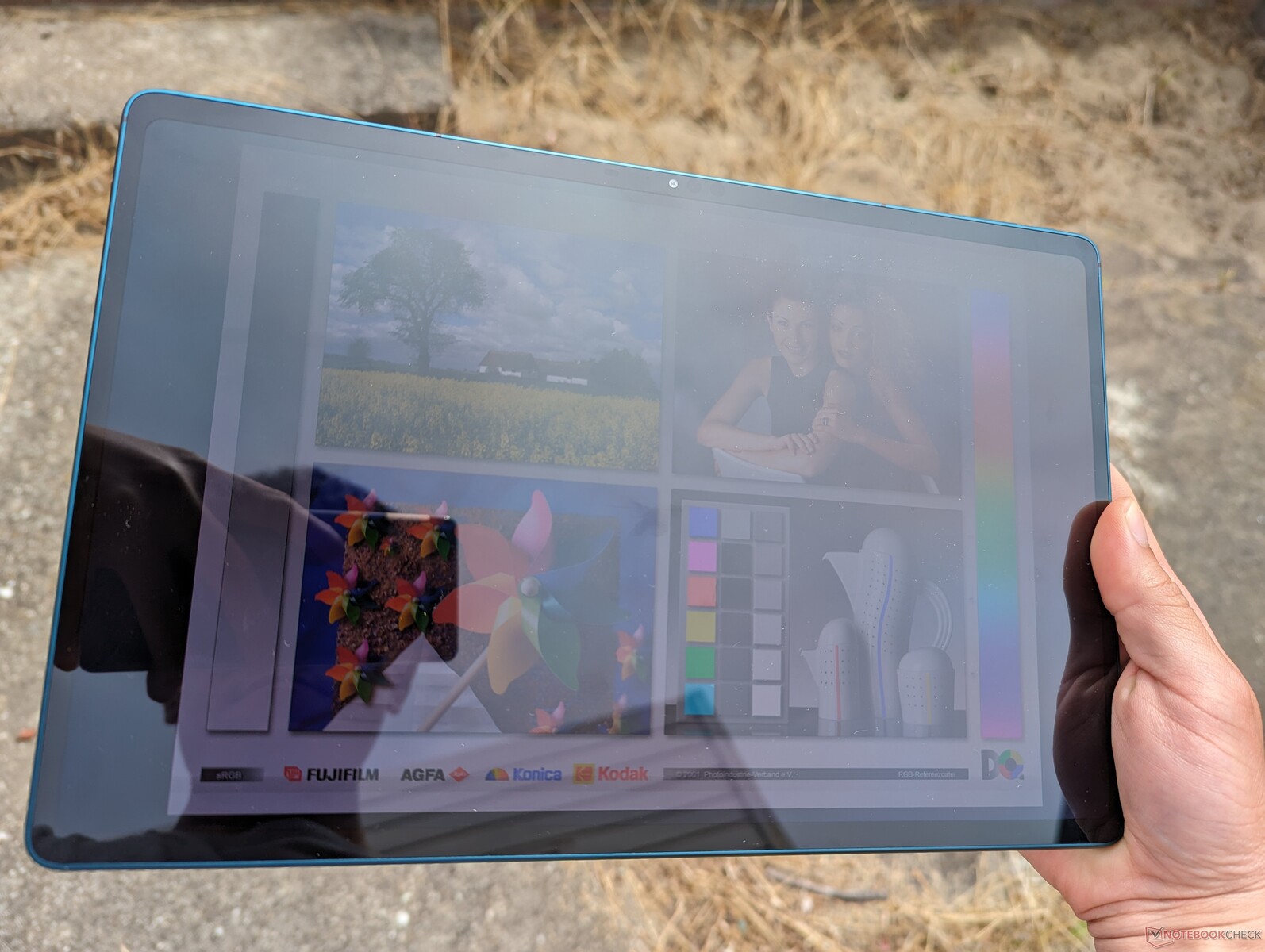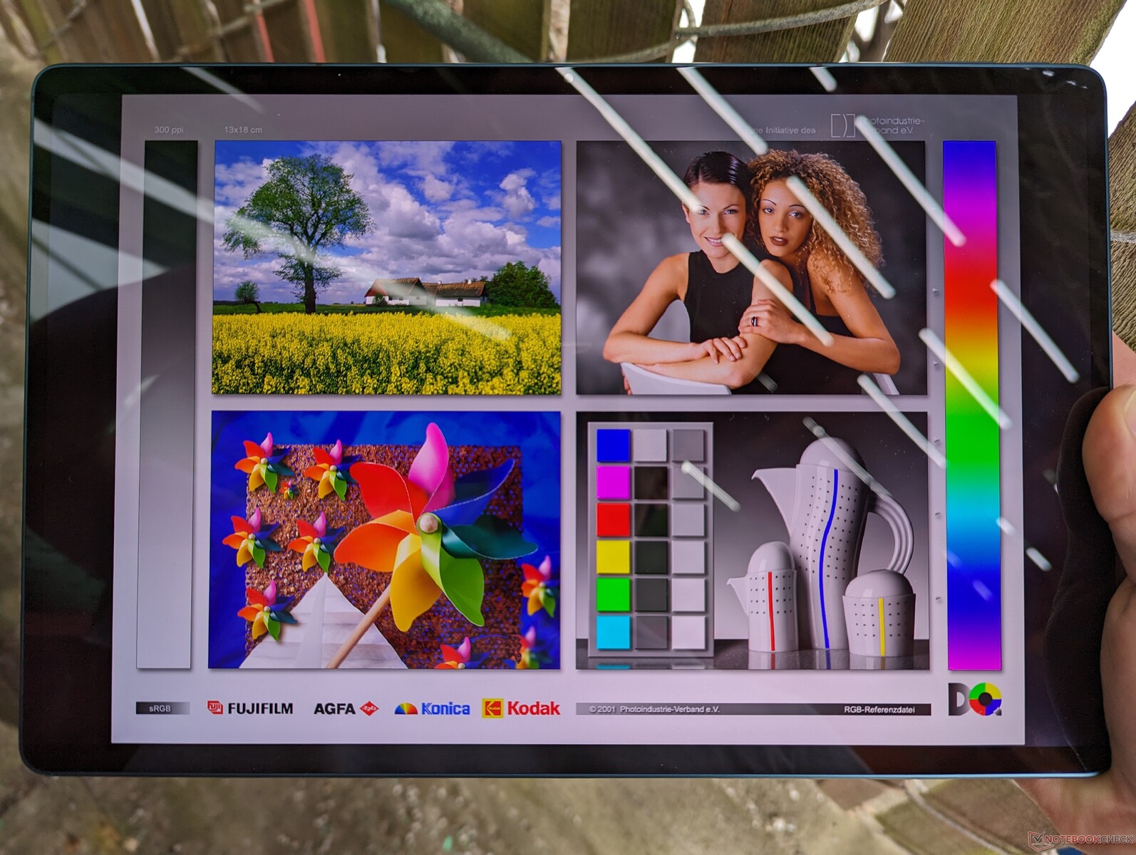 Das Display des Tablets wird im Verlgeich zum Surface Pro 9 oder zum Surface Go 3 um ca. 25 bis 35 Prozent heller. Nichtsdestotrotz ist es ratsam, das Gerät eher im Schatten zu nutzen, da man ansonsten mit ziemlich starken Spiegelungen und Farbverlust zu kämpfen hat.
